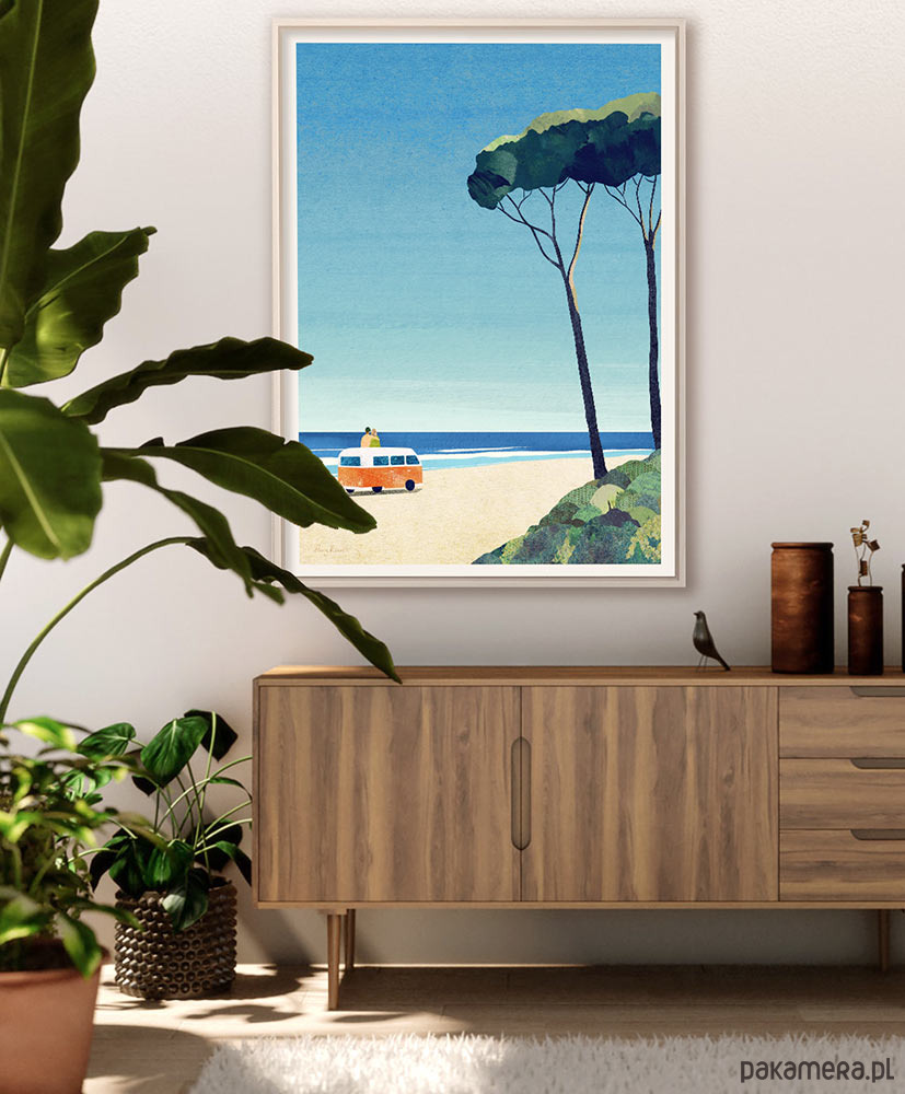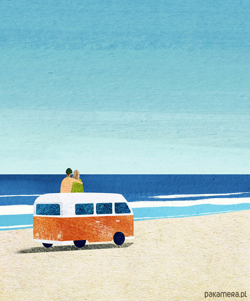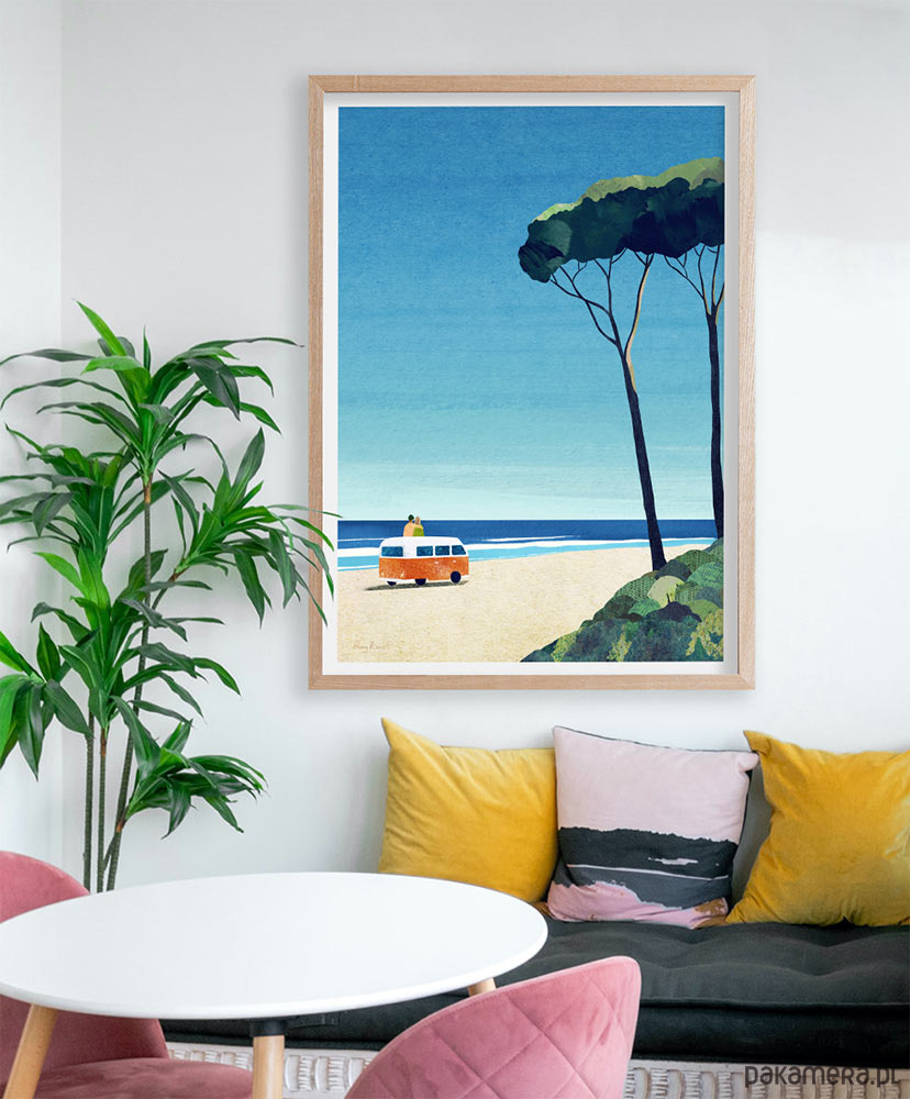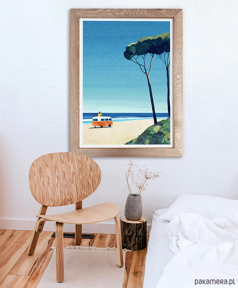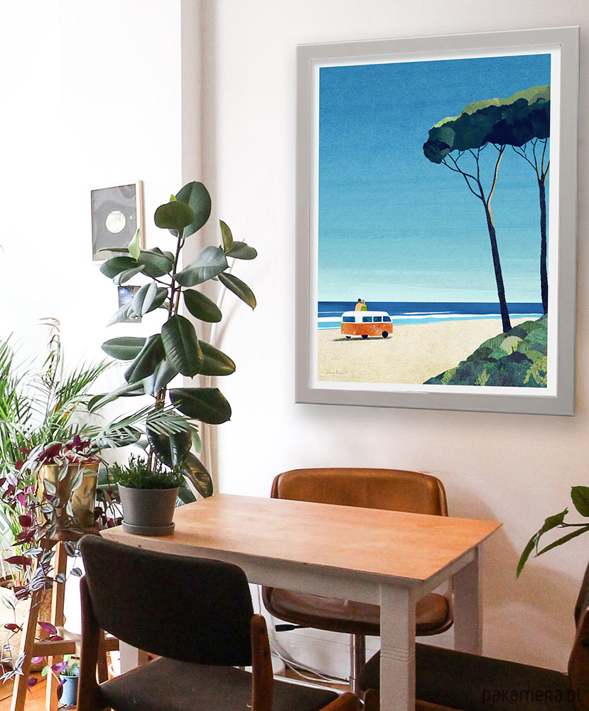 Najlepszym sposobem na oderwanie się od codzienności jest wybranie się w podróż. Nasz plakat to zachęta do chwytania każdej okazji, by zmienić ją w małą przygodę. Na plakacie para siedząca na kamperze relaksuje się wpatrzona w morski brzeg. Plakat morski z kamperem to świetna dekoracja domu pozwalająca marzyć o małych i dużych wyprawach.
