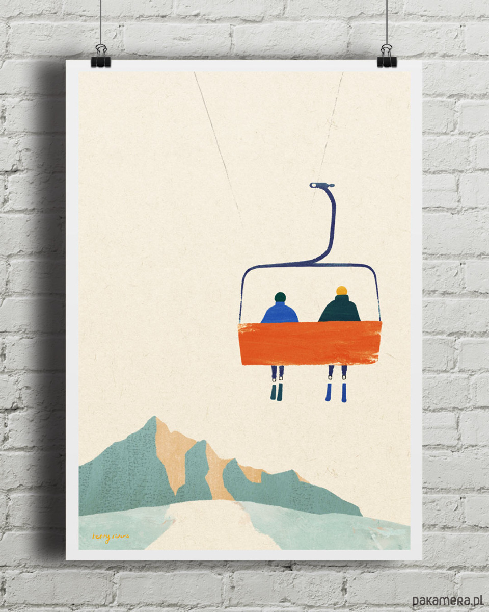 Plakat „Narty w górach - wyciąg narciarski” to idealna zimowa dekoracja domu dla wszystkich kochających sporty zimowe. Zima ma w sobie tą specyficzną energię, która sprawia, że każdy słoneczny dzień chce się wykorzystać w całości. Prosta kreska i minimalistyczne kolory podkreślają zimową przemianę krajobrazu w niemal magiczne miejsce.