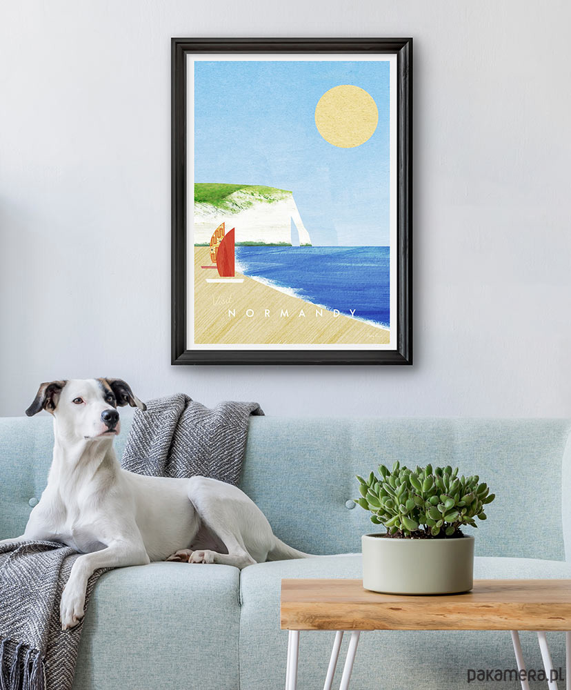 Plakat podróżniczy z malowniczym wybrzeżem Normandii. Urzeka piaszczystymi plażami i najbardziej znany skalnym łukiem w Etretat. Wyjątkowy poster ozdobi ścianę każdego frankofila i fana nadmorskich krajobrazów.