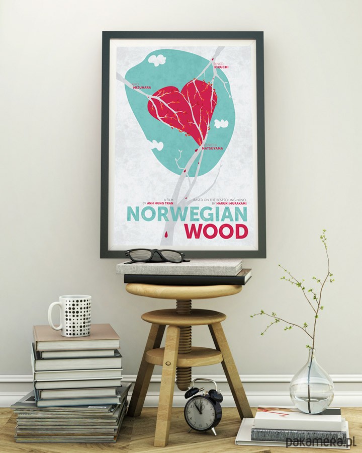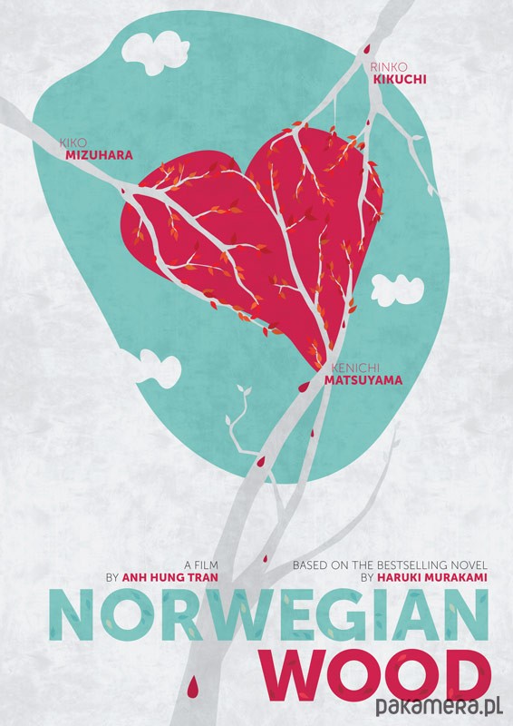 Plakat z autorską grafiką inspirowaną filmem "Norwegian Wood" reż. Tran Anh Hunga, na podstawie powieści Haruki Murakamiego.
