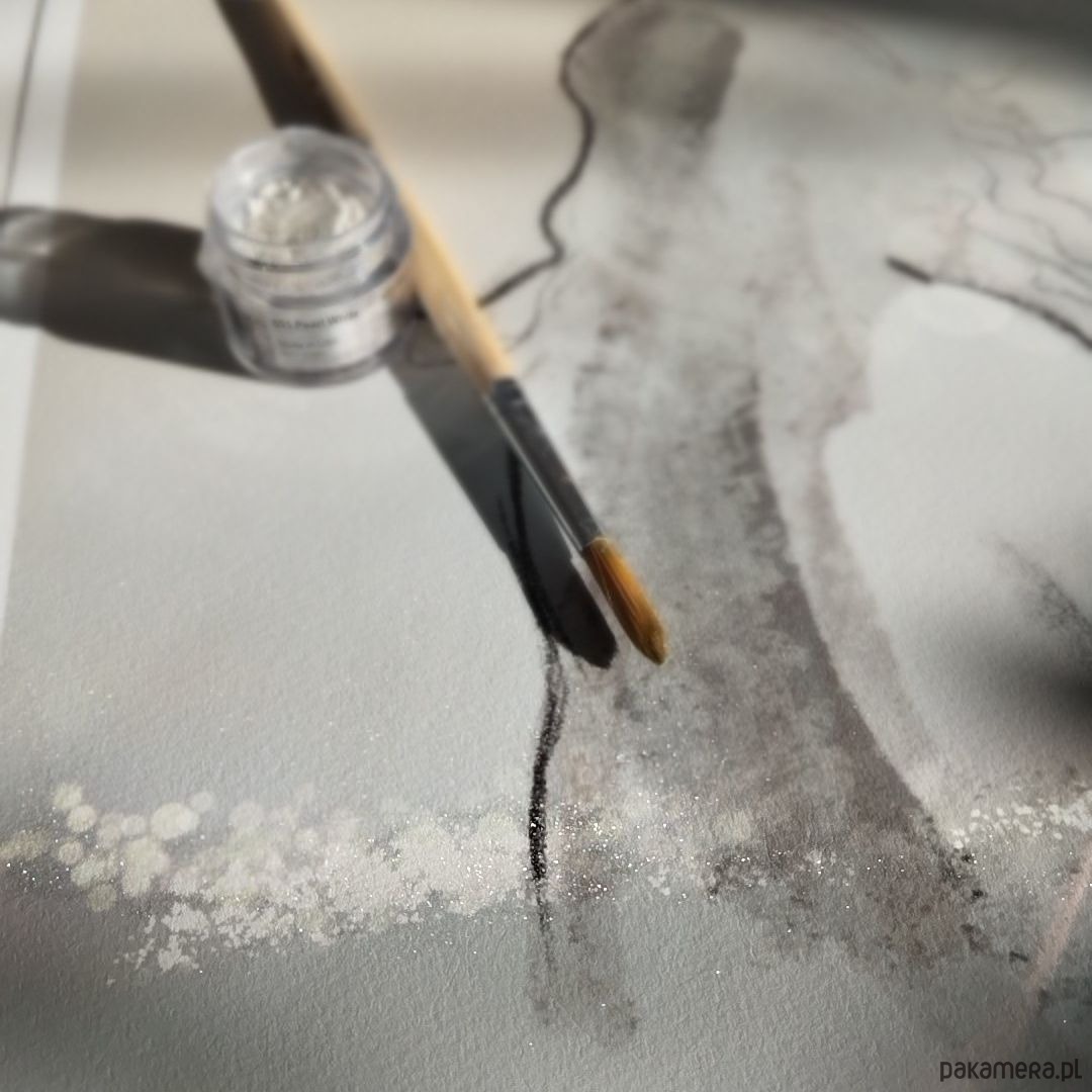 Wydruk artystyczny giclee jest personalizowany specjalnym perłowym pigmentem , który po nałożeniu nadaje pracy delikatny magiczny poblask.