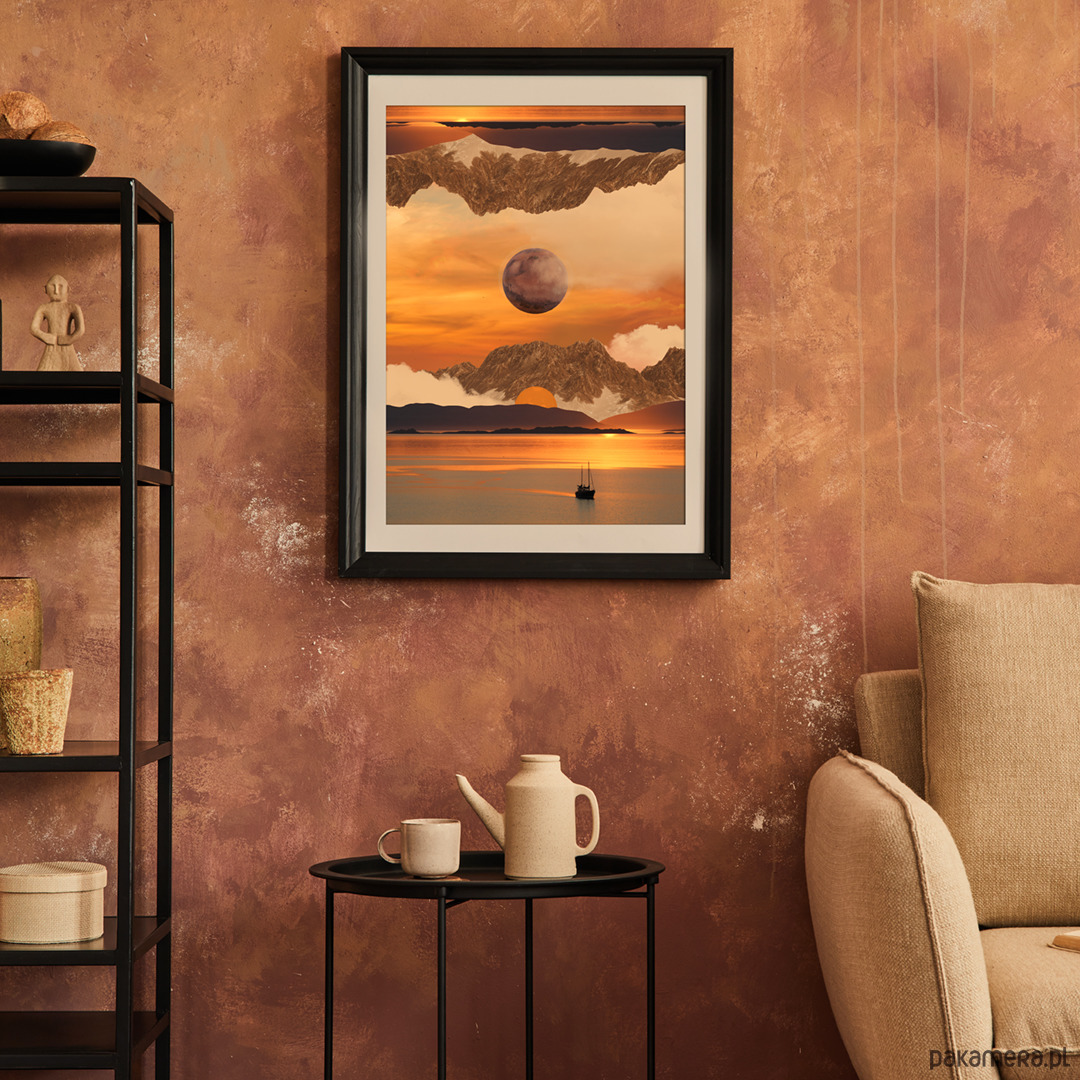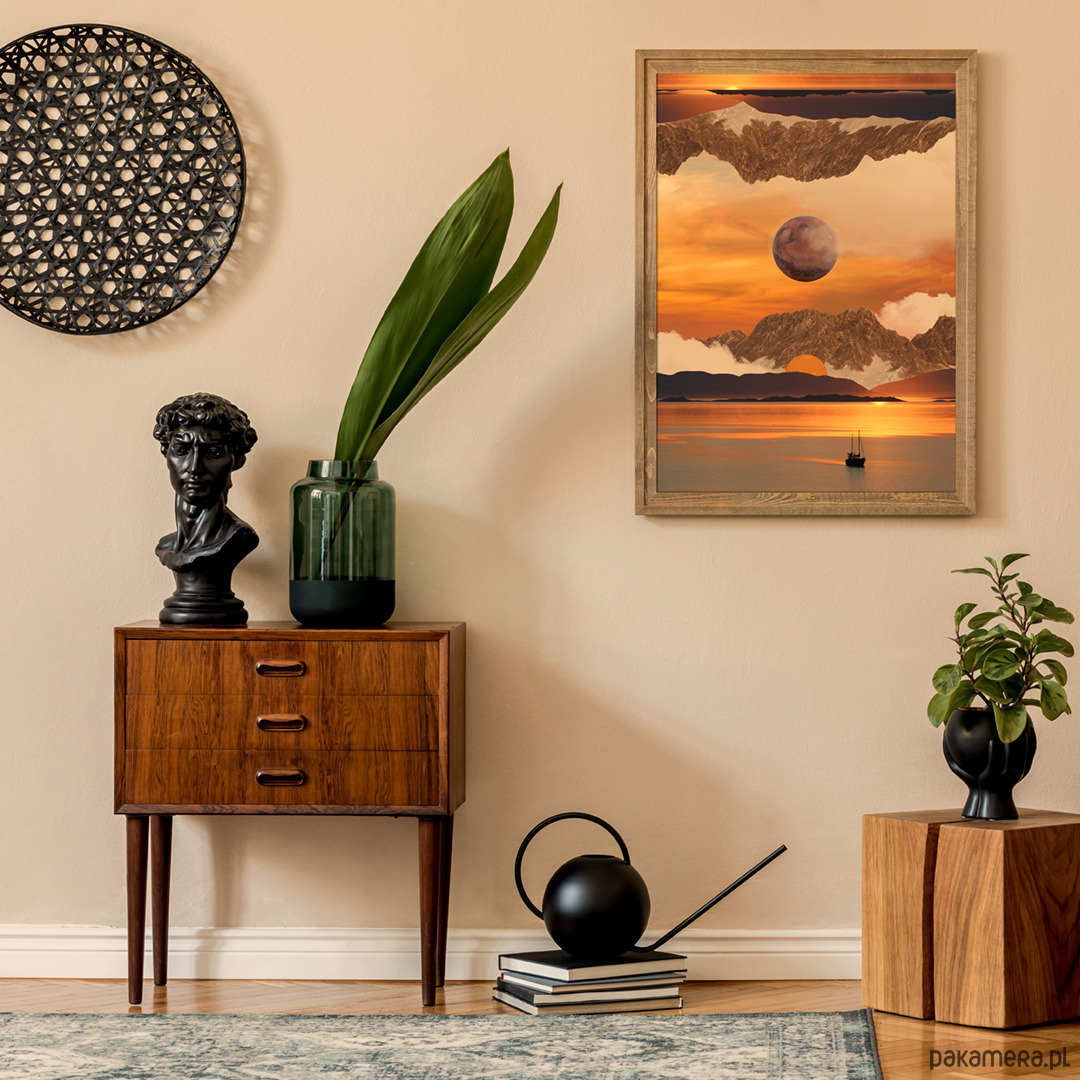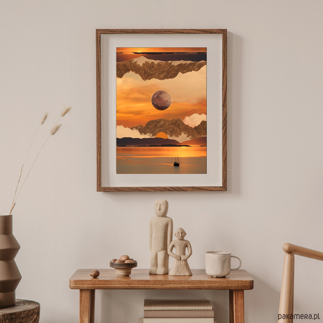 Kojący i melancholijny kolaż "Odpływy", który inspirowany jest zachodami słońca i beztroskością długich, letnich dni. Spokój, który z niego płynie wprowadzi harmonię do wnętrza w którym zawiśnie.