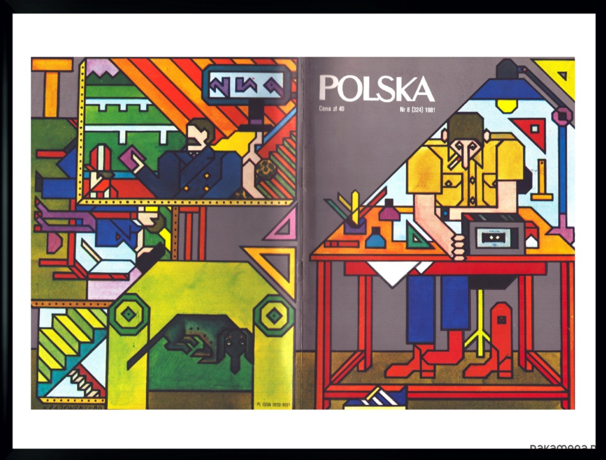 Plakat Oprawiona okładka miesięcznika POLSKA, aut. Andrzej Krajewski, 08/1981 r
