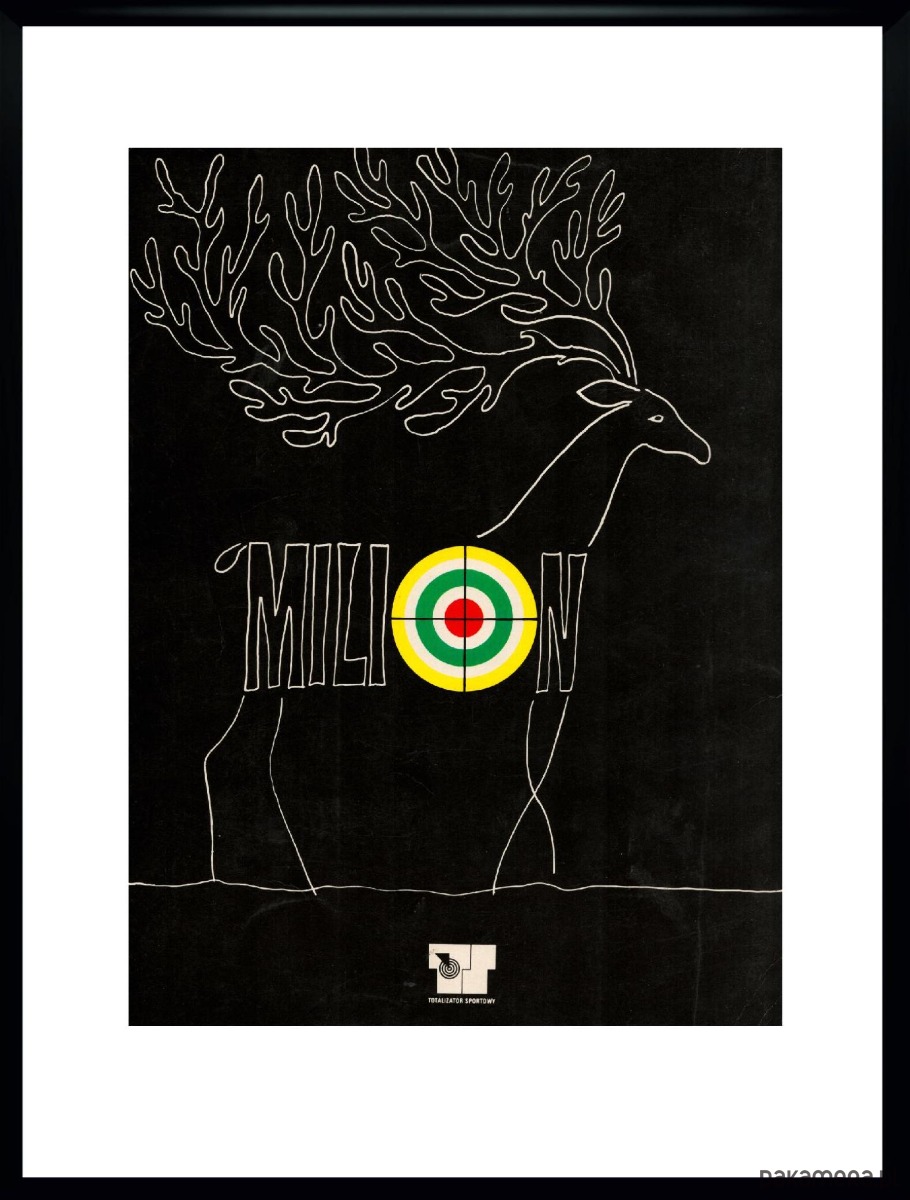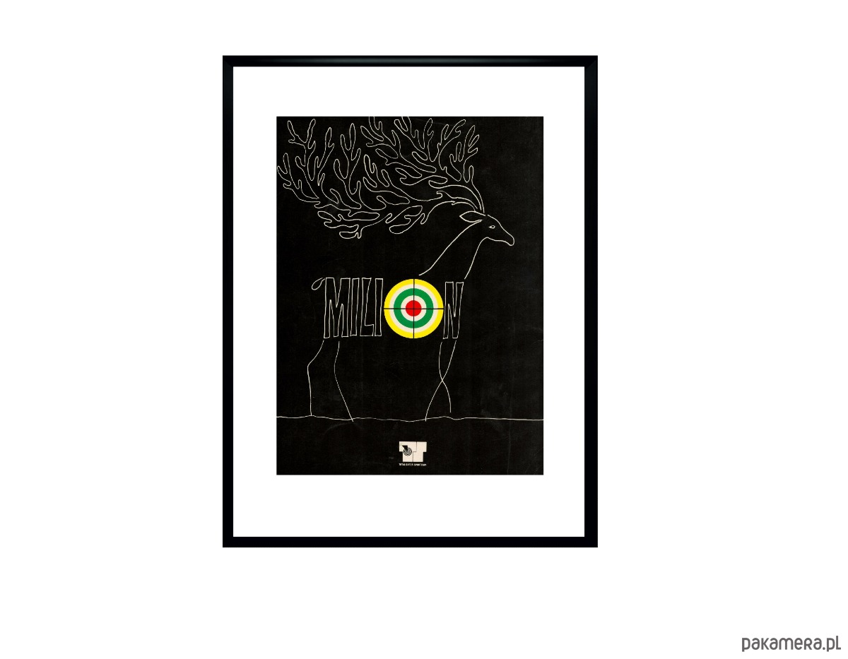 Plakat Oprawiona reklama Totalizatora Sportowego z jeleniem, lata 70te.