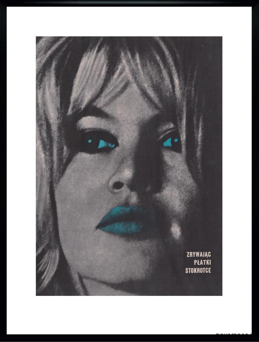 Oprawione zdjęcie prasowe Brigitte Bardot "Zrywając płatki stokrotce", 1962 r, w czarnych ramkach o wymiarach 30 x 40 cm