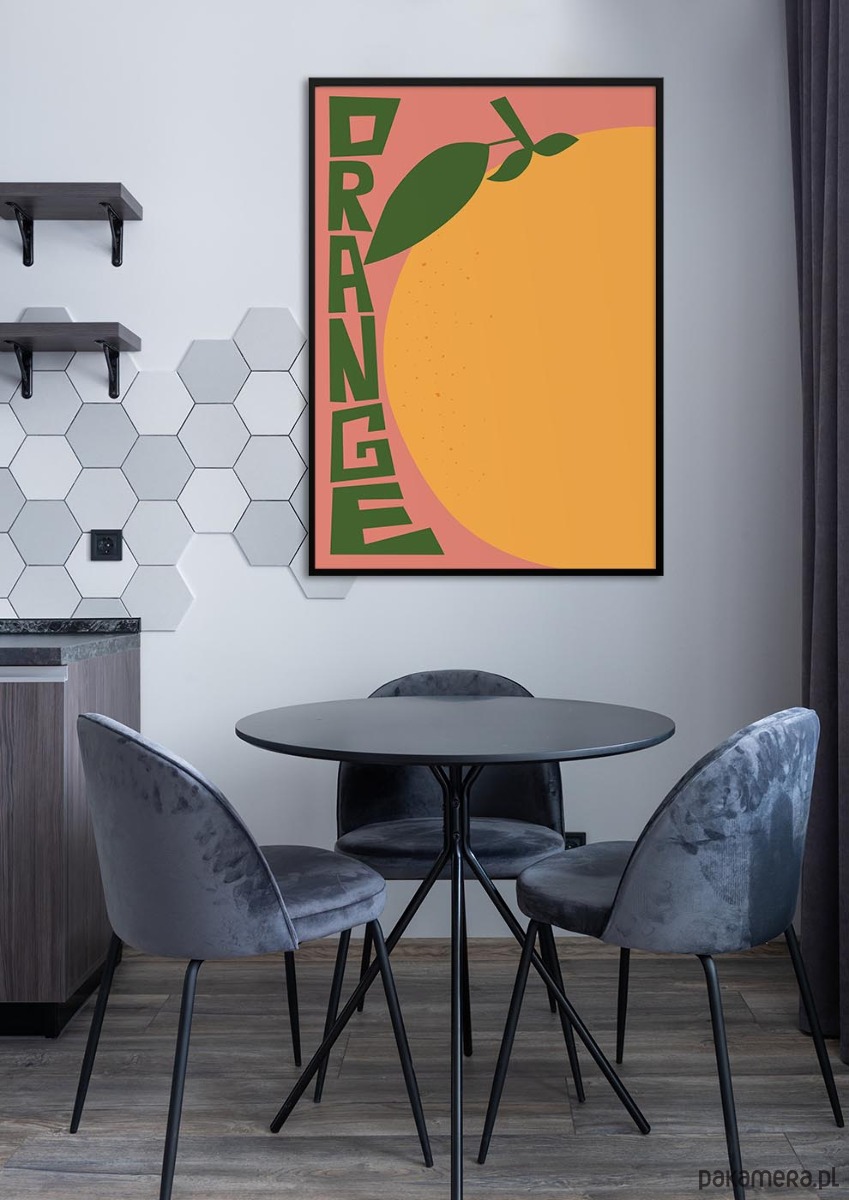 Plakat Pomarańcza/Orange to nowoczesna ilustracja inspirowana naturą, utrzymana w minimalistycznej formie i intensywnej kolorystyce. Motyw pomarańczy w połączeniu z wyrazistą typografią nadaje wnętrzu świeżości, energii i designerskiego charakteru. Idealny do kuchni, salonu, biura oraz nowoczesnych przestrzeni komercyjnych.