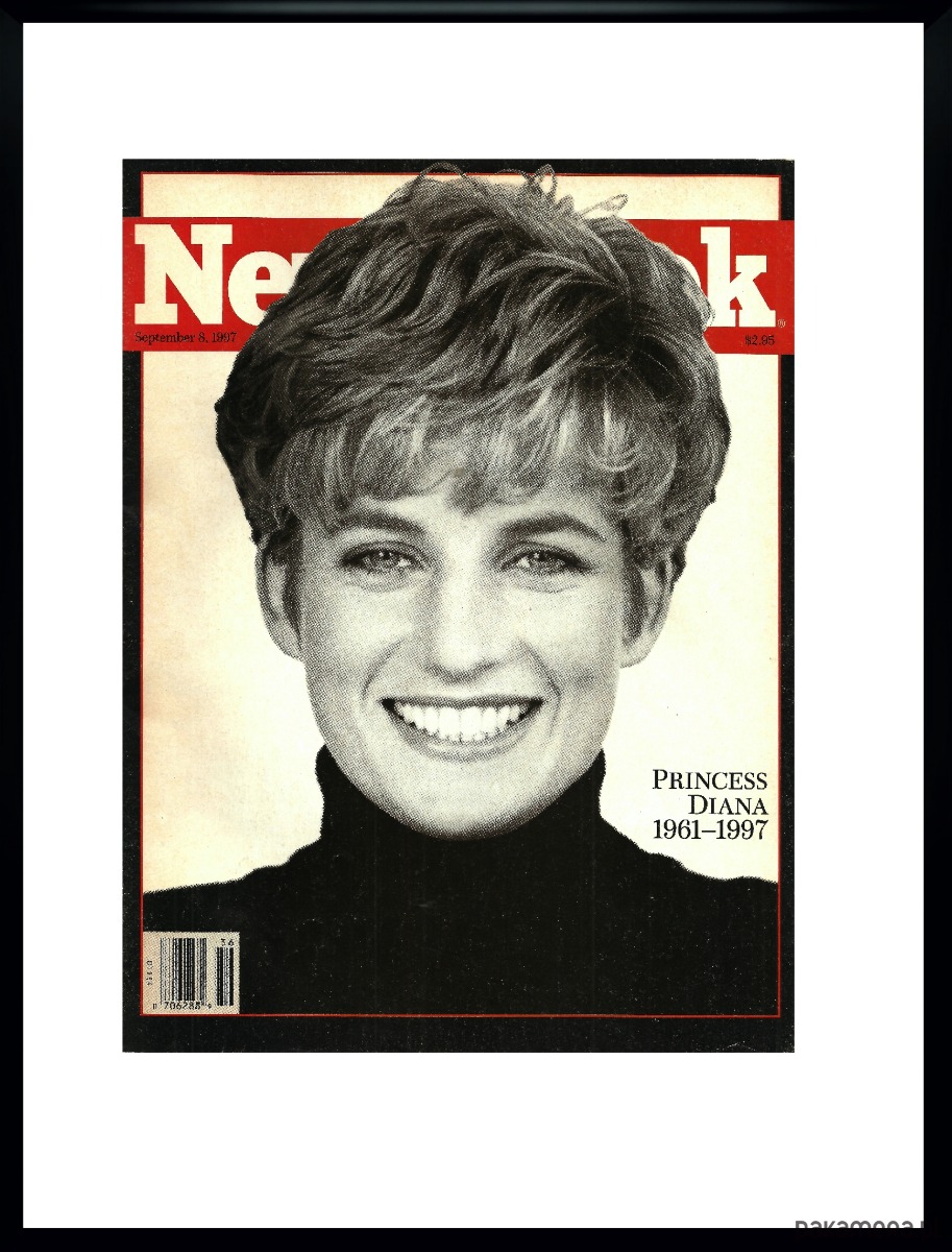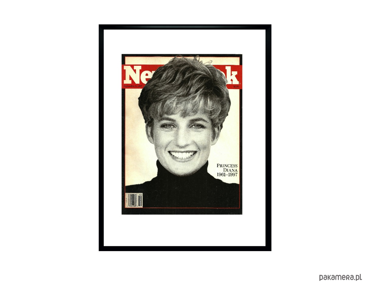 Oryginalna oprawiona okładka NEWSWEEK z księżną Dianą z 1997 r. Okładka w czarnych ramkach o wymiarach 30 x 40 cm