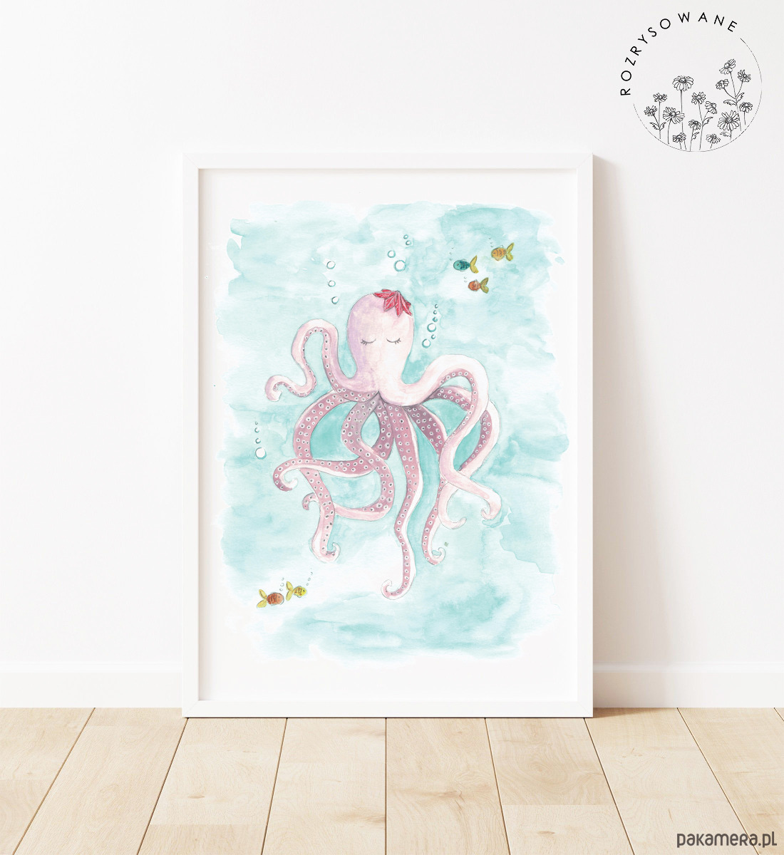 Plakat z autorską ilustacją , wydrukowany na wysokiej jakości papierze o gramaturze 260g/m2 z delikatną fakturą w kolorze naturalnej bieli, przypominająca papier akwarelowy.