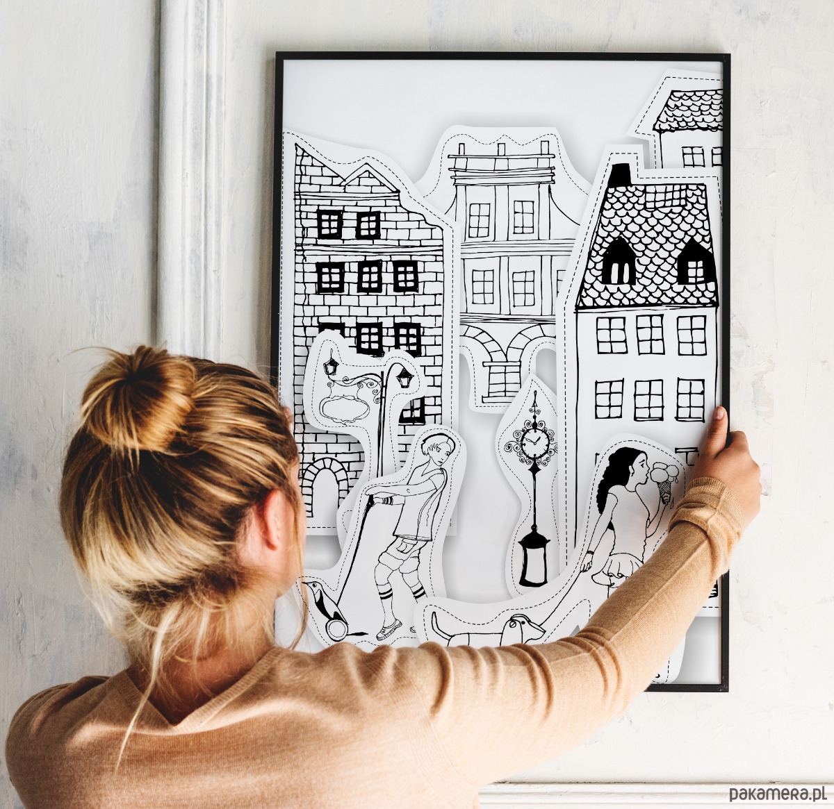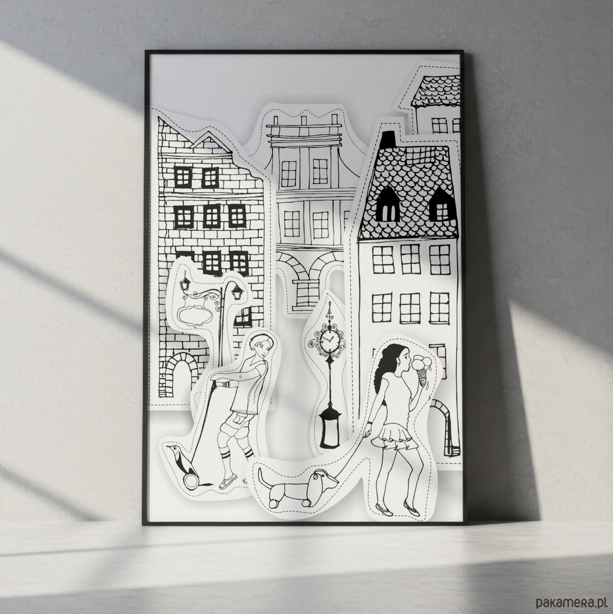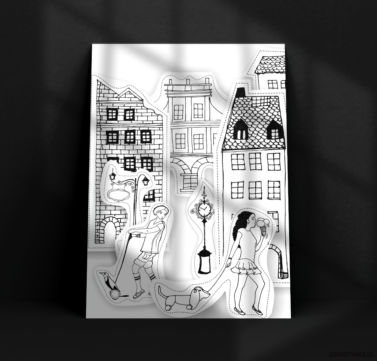 Papierowe miasto, to autorska ilustracja wykonana techniką mieszaną.