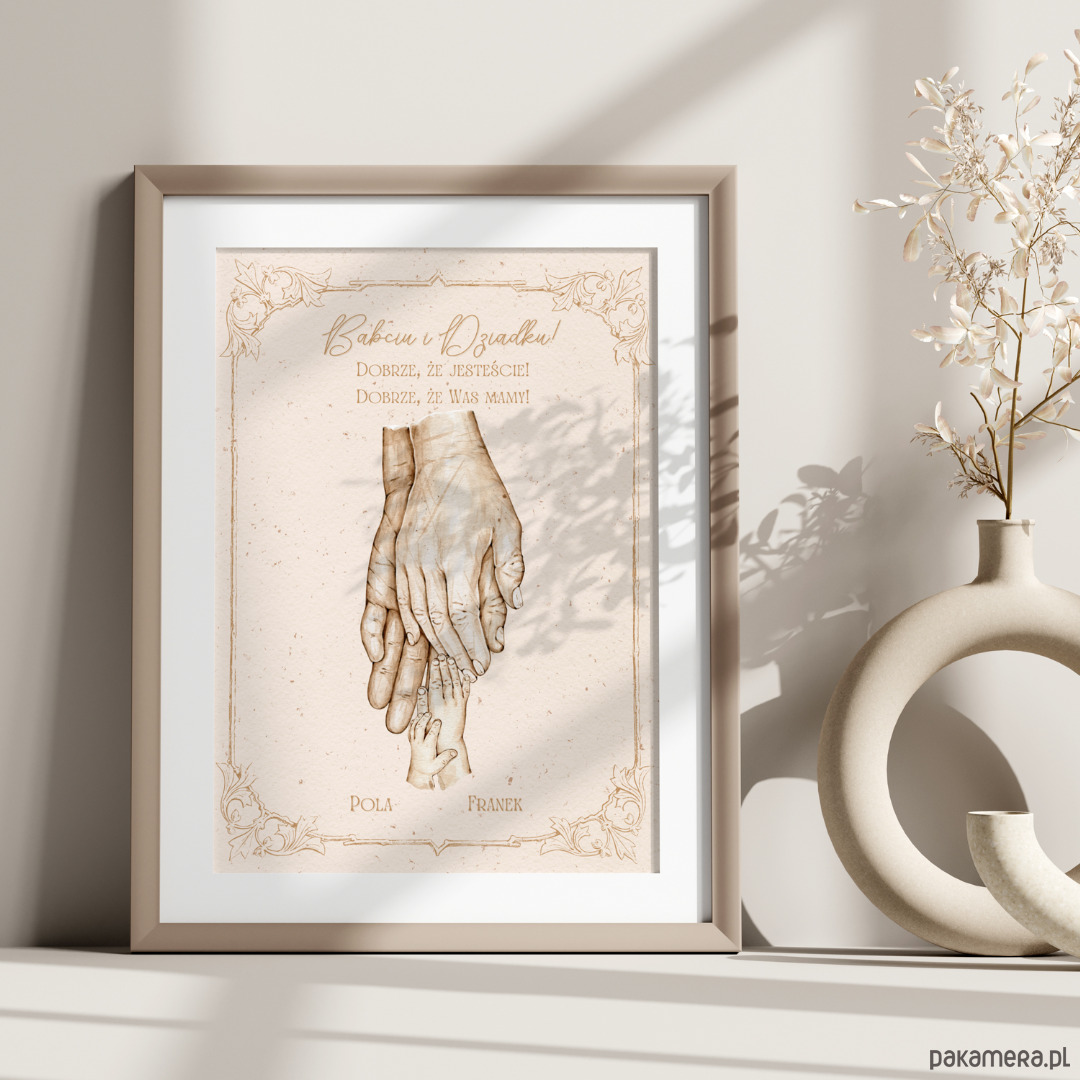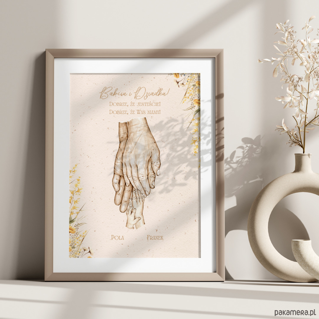 Plakaty przedstawiają dłonie babci, dziadka oraz wnuków.