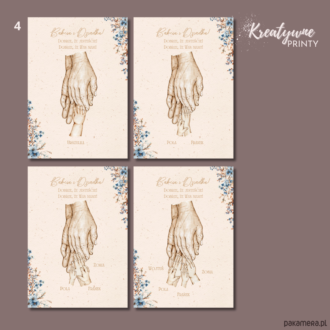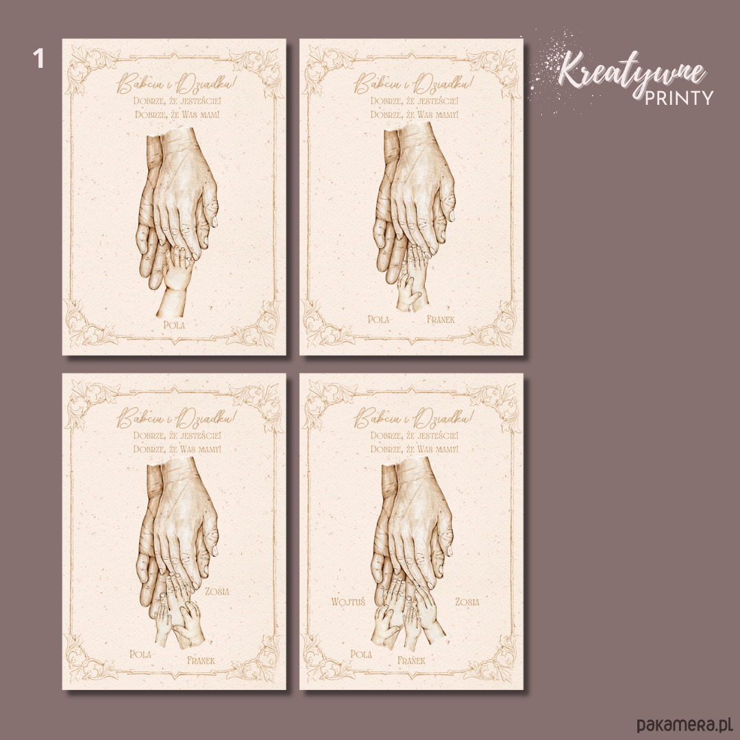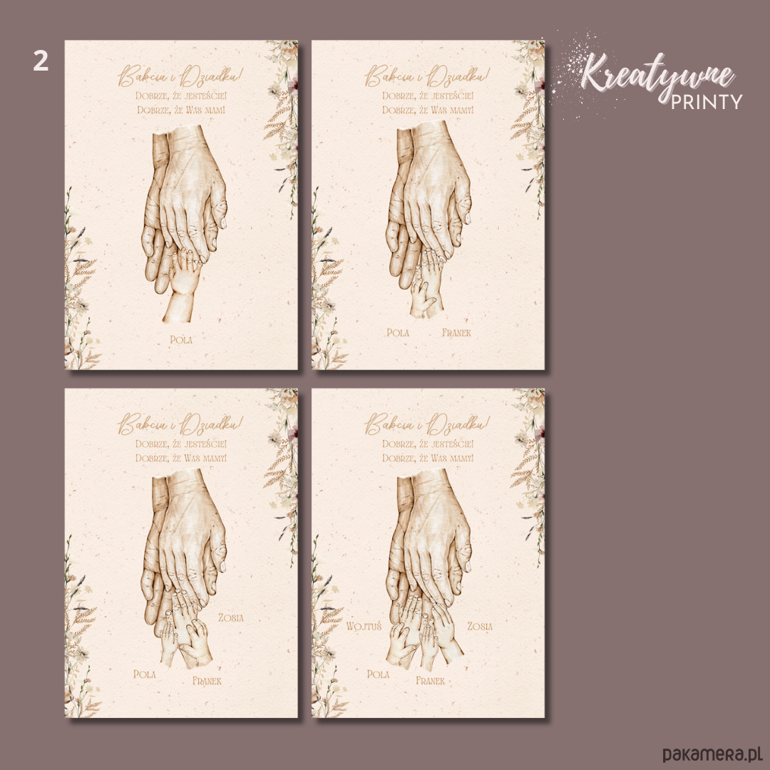 Do wyboru 4 warianty graficzne z możliwością wyboru ilości dziecięcych dłoni od 1 do 4.