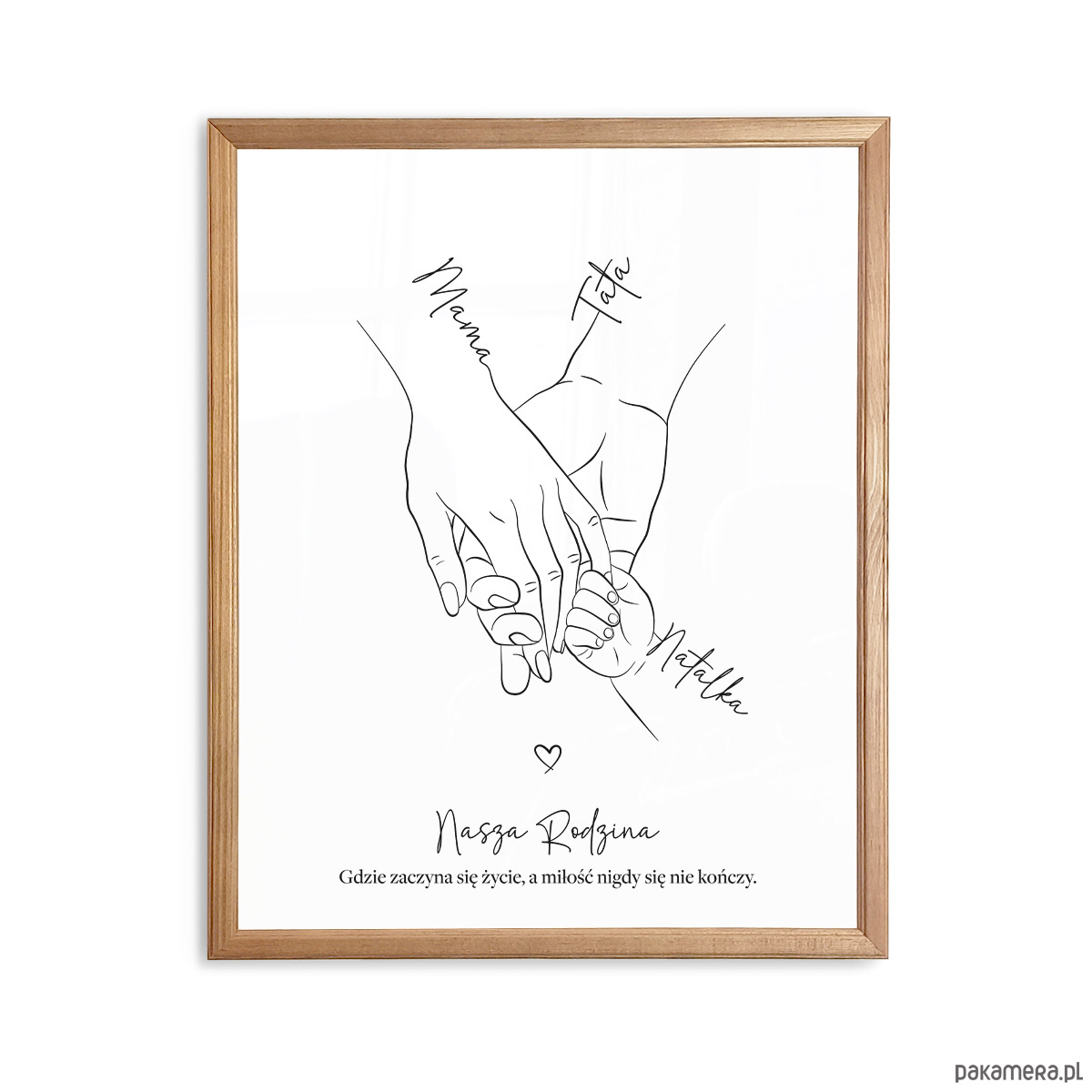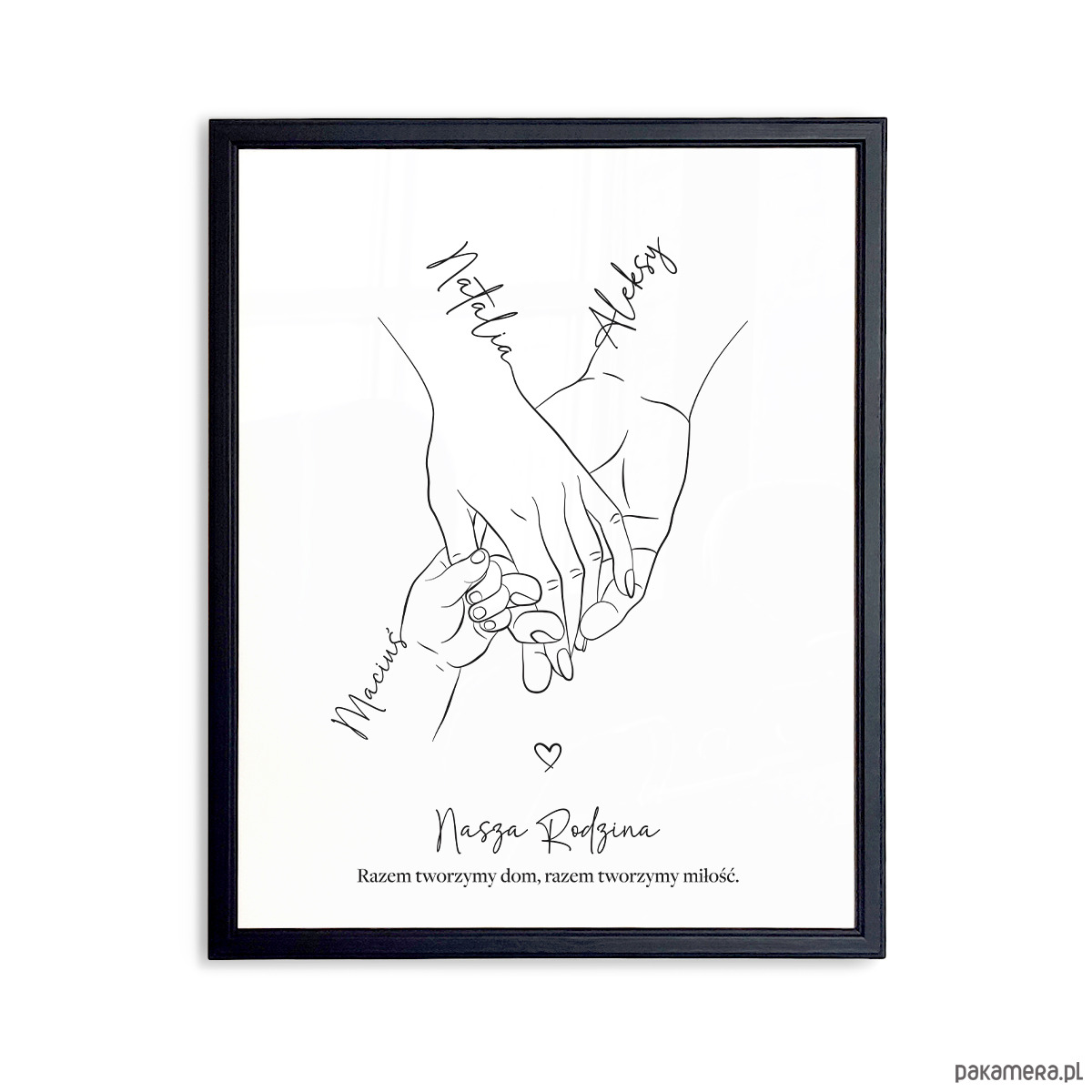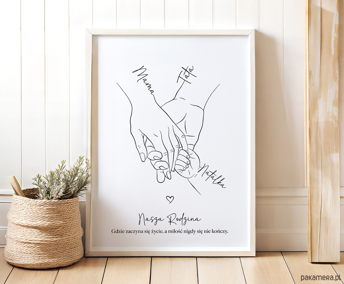 ✨Plakat personalizowany „Rodzina trzymająca się za ręce” – 3 osoby (Mama, Tata, dziecko)