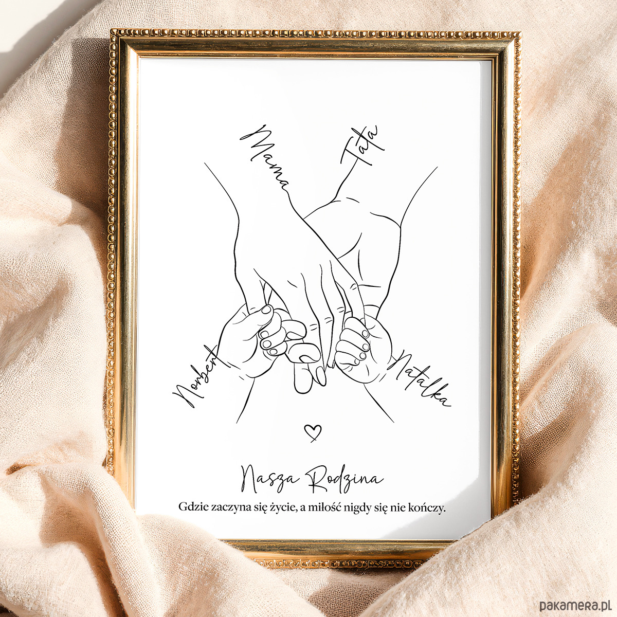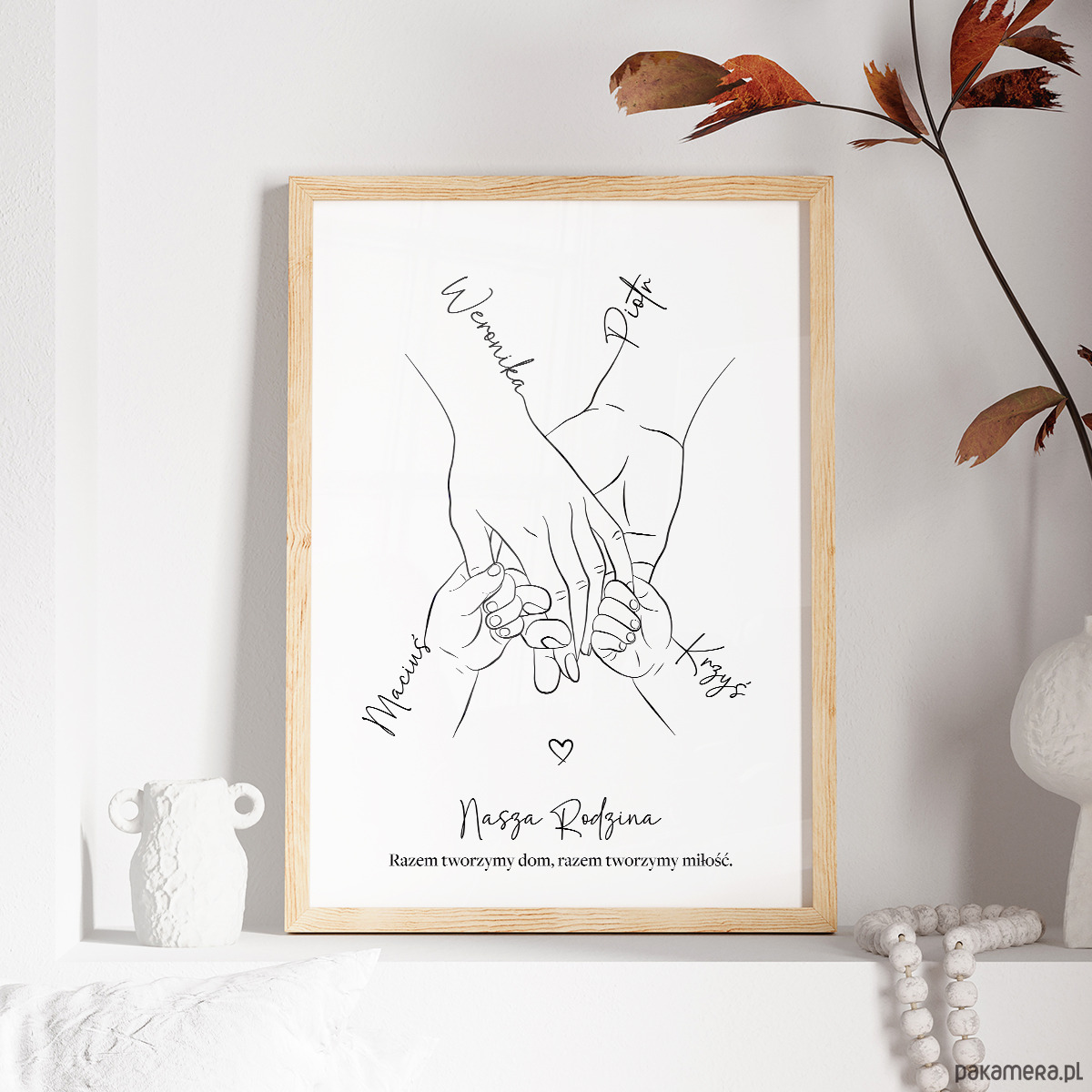 ✨Plakat personalizowany „Rodzina trzymająca się za ręce” – 4 osoby (Mama, Tata, dwójka dzieci)