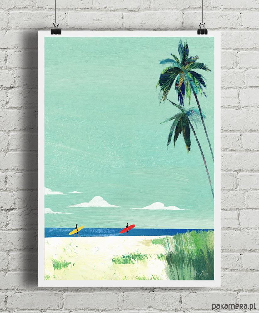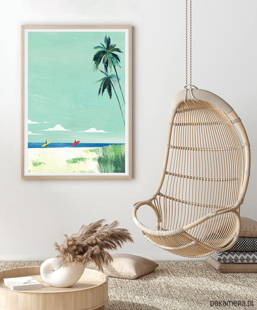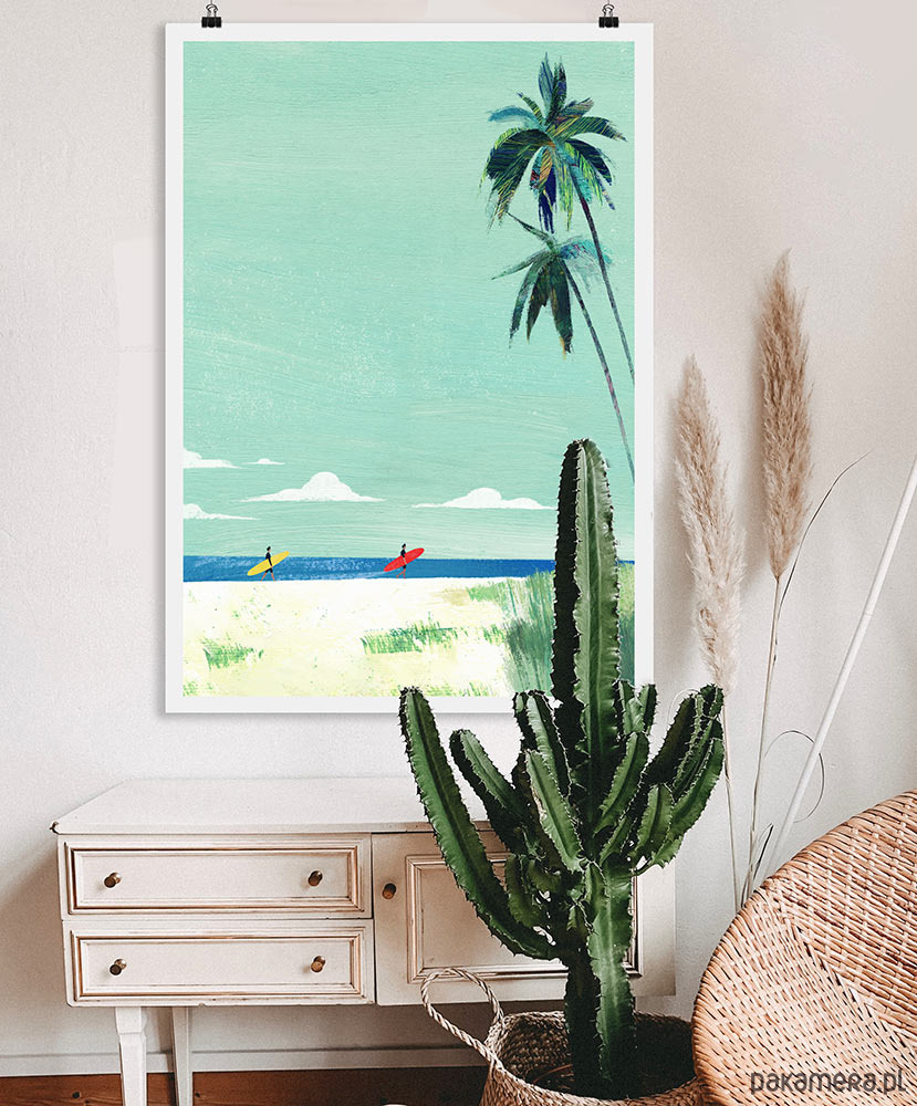 Plakat Plaża surferów - wakacje pod palmami