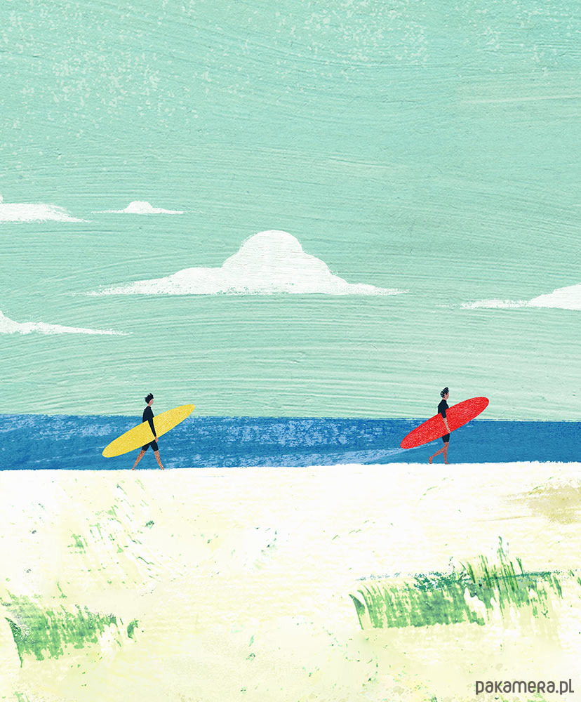 Dzikie plaże i nieposkromione fale, to marzenie każdego surfera. Plakat przedstawia takie właśnie idealne miejsce, skąpane w słońcu o poranku. Grafika przesycona jest aurą wakacyjnego relaksu. Idealna dekoracja dla fanów surfingu i nie tylko.