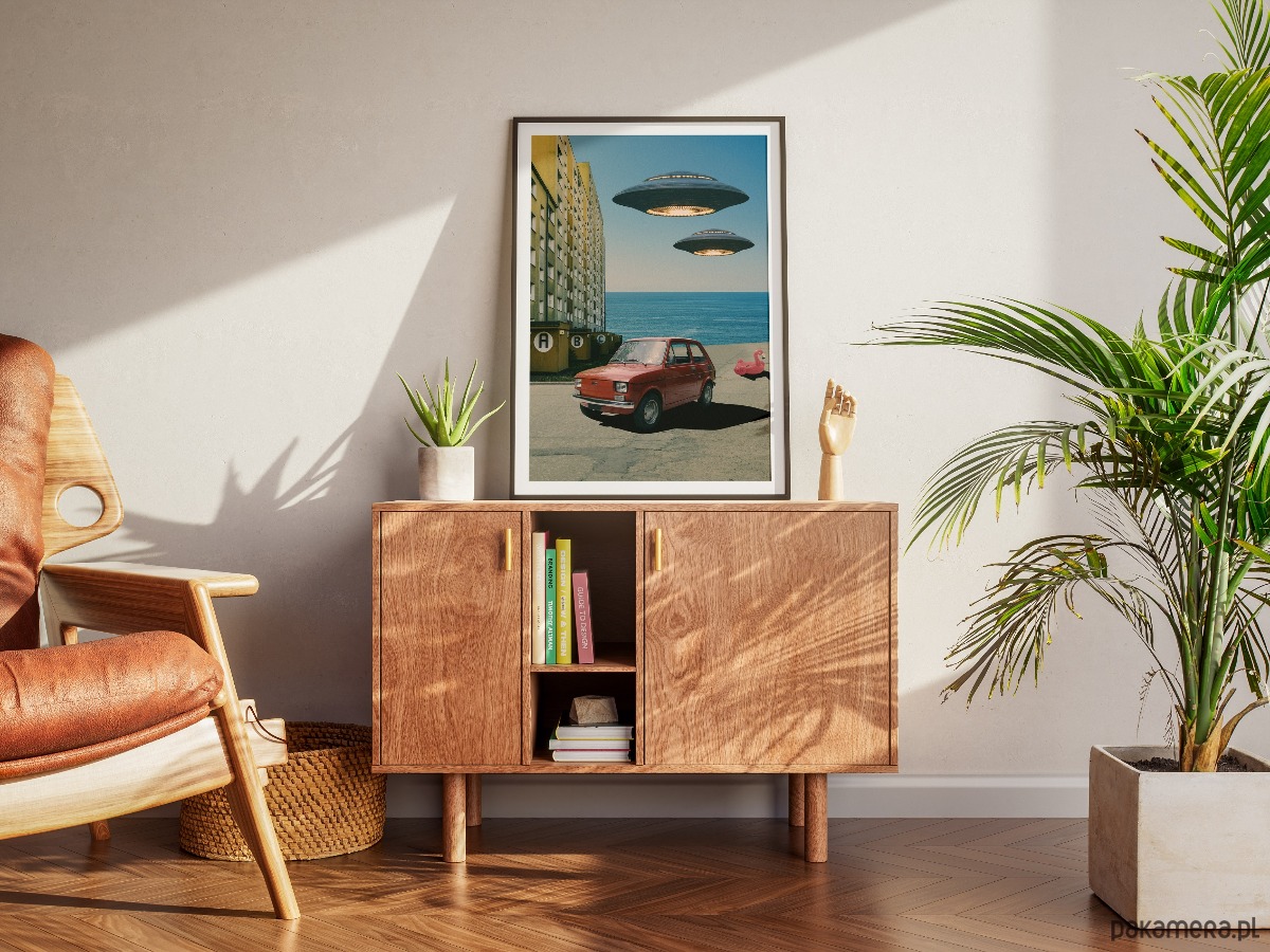 To praca dla fanów absurdu, retro estetyki i pokręconych historii, które rozgrywają się gdzieś między rzeczywistością a snem. Idealnie wpisze się we wnętrza loftowe, vintage czy eklektyczne, dodając im charakteru i humoru.