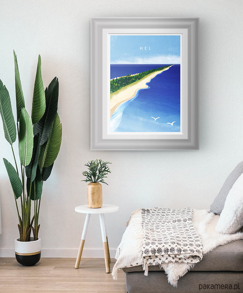Plakat "Hel - z lotu ptaka" to piękna, morska dekoracja do każdego wnętrza. Intensywnie niebieska grafika świetnie sprawdzi się zarówno w domu, jak i w dobrze urządzonym pensjonacie.