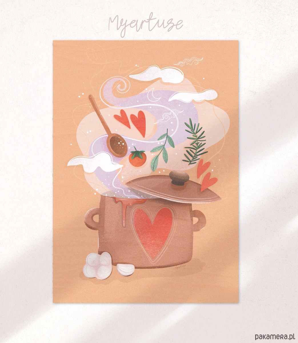 Ilustracja ma bardzo miły i przytulny klimat, dobrze się sprawdzi np. jako prezent dla kucharki / kucharza!❣️