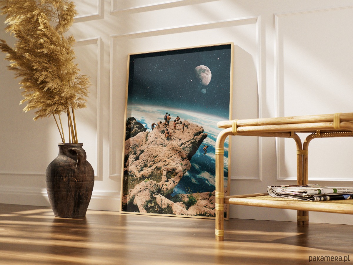 Plakat idealnie sprawdzi się w nowoczesnych, loftowych i minimalistycznych wnętrzach, a także w aranżacjach retro. Doskonale komponuje się z naturalnym drewnem, betonem i neutralnymi barwami, wprowadzając do przestrzeni inspirujący, kosmiczny nastrój.