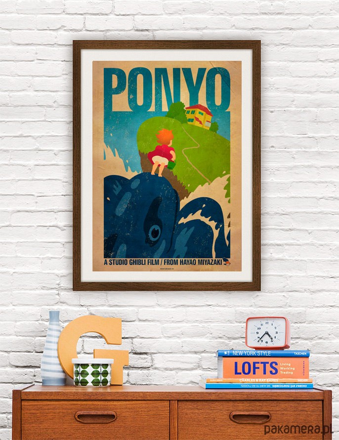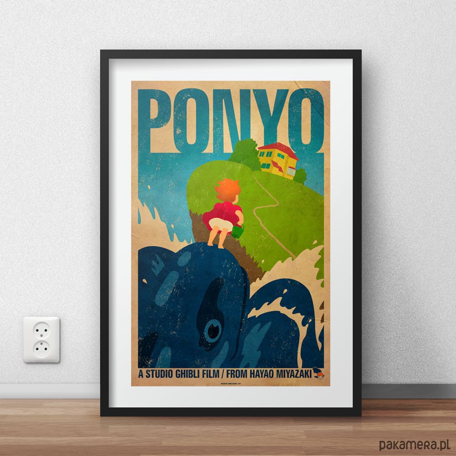 Plakat z autorską grafiką inspirowaną filmem Ponyo w reżyserii Hayao Miyazakiego.