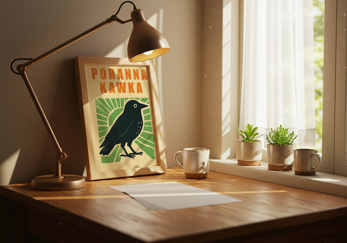 Cyfrowy wydruk autorskiej ilustracji. Zaprojektowany i wydrukowany w Polsce.