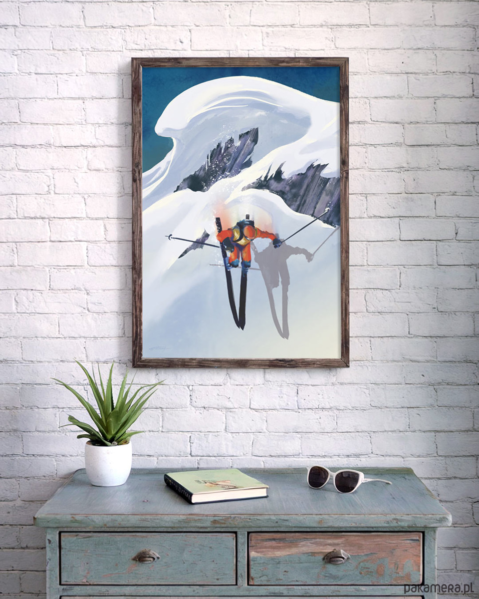 "Narciarstwo freeride / Poza szlakiem" to plakat dla wszystkich, którzy przez cały rok marzą o górskich szczytach pokrytych świeżym śniegiem. Zimowa grafika przedstawia wierzchołek niedostępnej góry na tle której widzimy zjeżdżającego narciarza. Autorem plakatu jest kanadyjski artysta Sassan Filsoof.