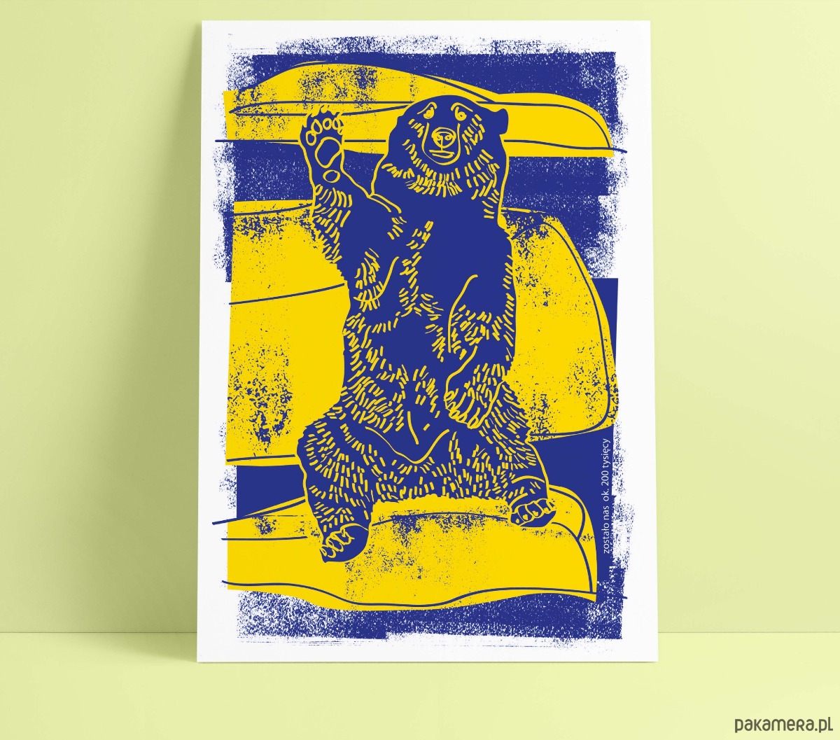 Plakat "Praskie miśki" jest częścią cyklu "Zwierzyniec Warszawski II", który przedstawia słynne zwierzęta Warszawy. Niedźwiedzi brunatnych zostało na świecie ok. 200 tyś. szt. i ta informacja jest również umieszczona na plakacie. Powstał na cześć tych majestatycznych zwierząt. Plakat dostępny w różnych wymiarach, drukowany w limitowanej serii 50 szt. Praca pasować będzie do wnętrz nowoczesnych i minimalistycznych ale także ekstrawaganckich. Może szczególnie spodobać się podróżnikom i miłośnikom przyrody. Będzie pasować do sypialni i salonu, a także przedpokoju.