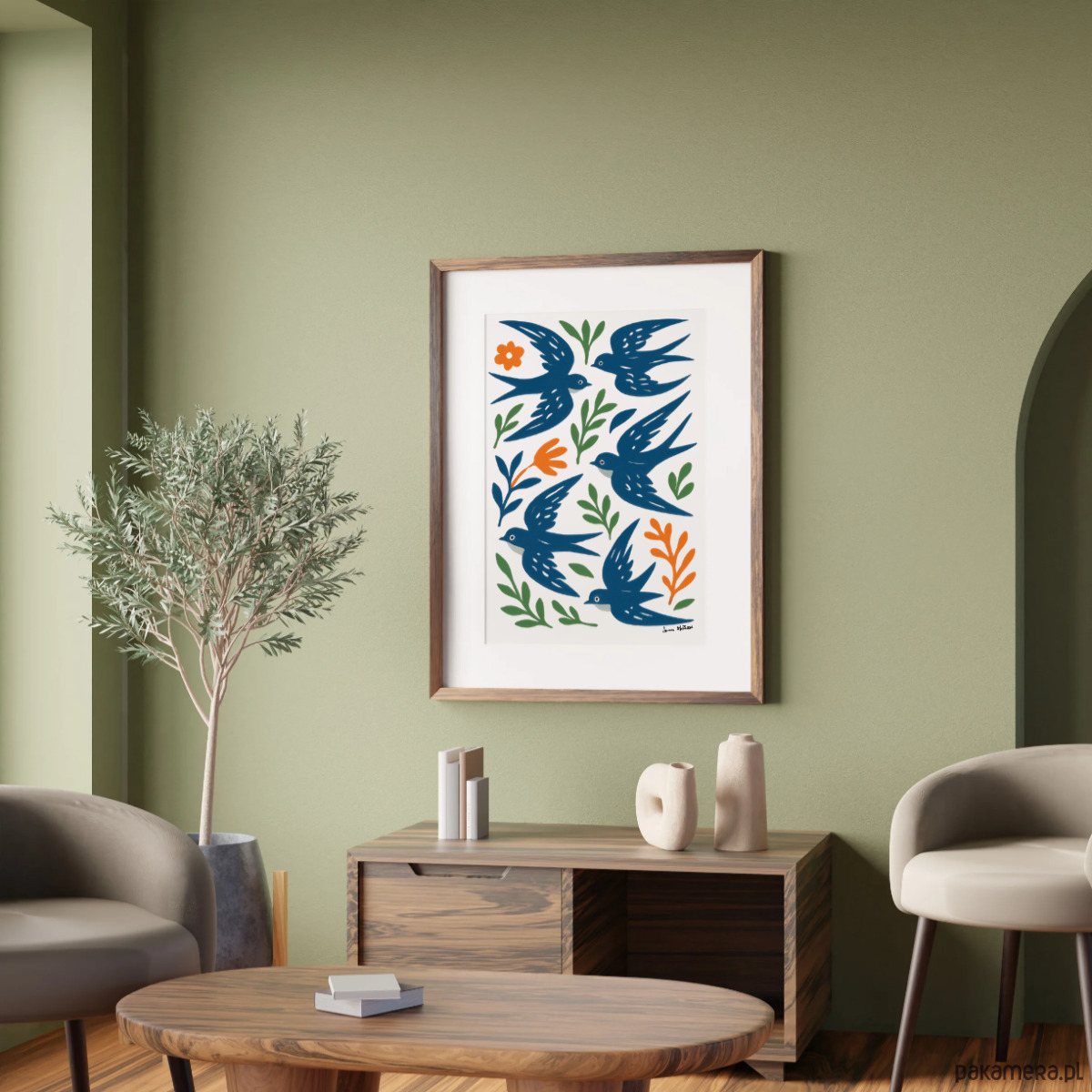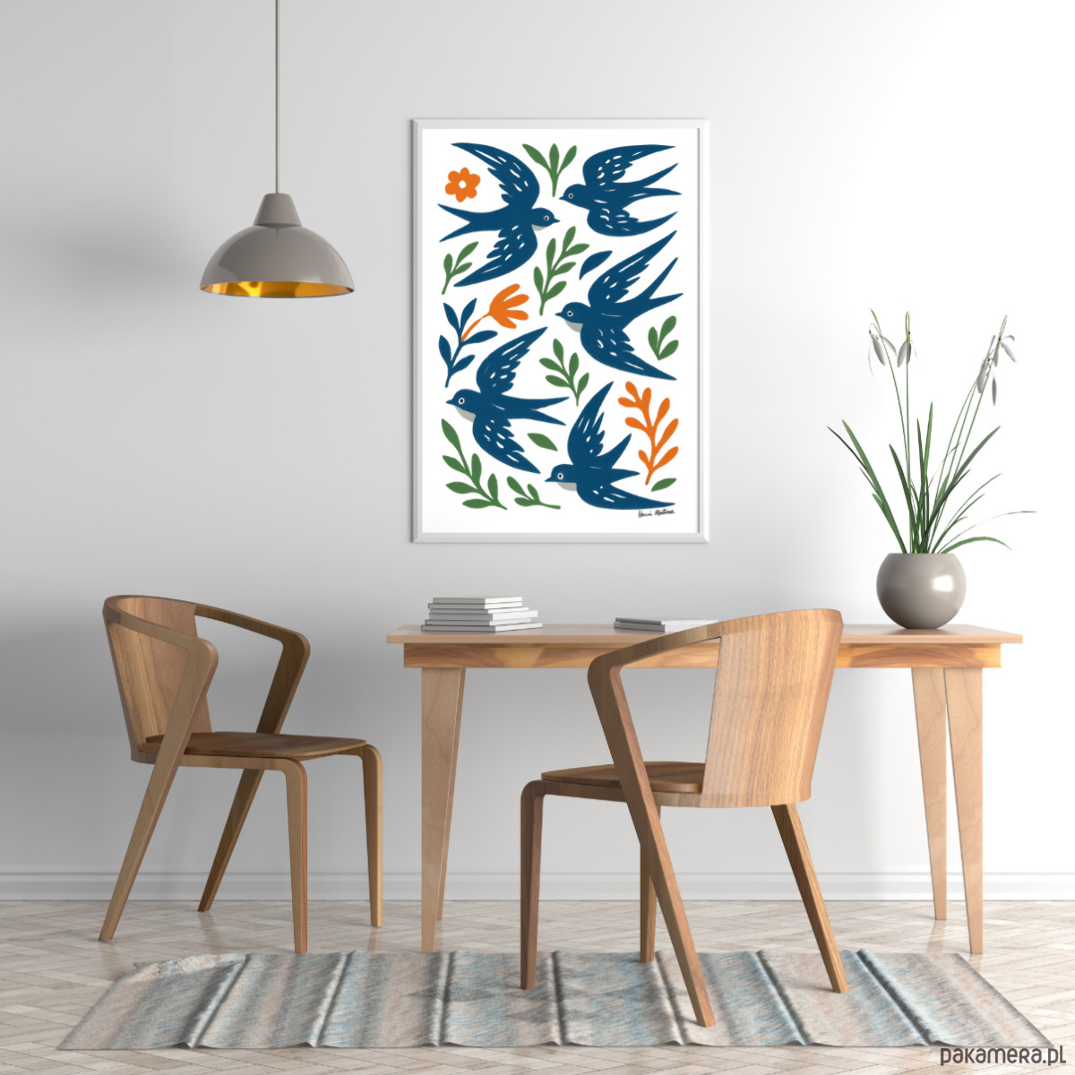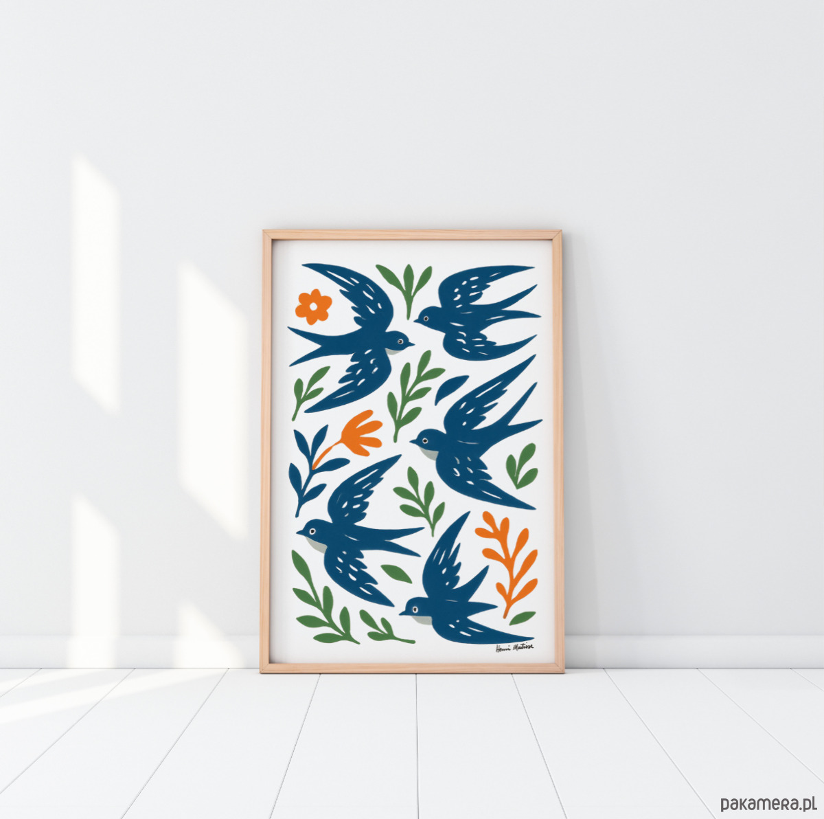 PLAKAT ptaki , jaskółki grafika, niebieska dekoracja ścienna, Matisse