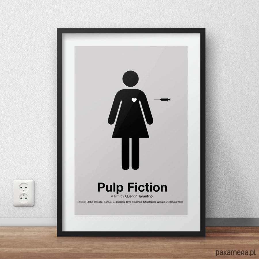Plakat z autorską grafiką inspirowaną filmem Pulp Fiction w reżyserii Quentina Tarantino.