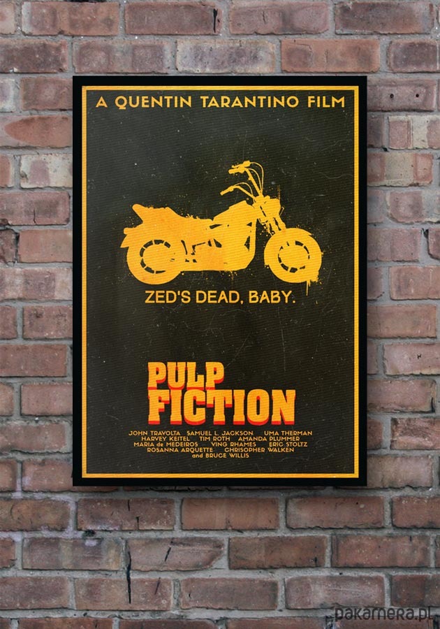 Plakat z autorską grafiką inspirowaną filmem Pulp Fiction w reżyserii Quentina Tarantino.