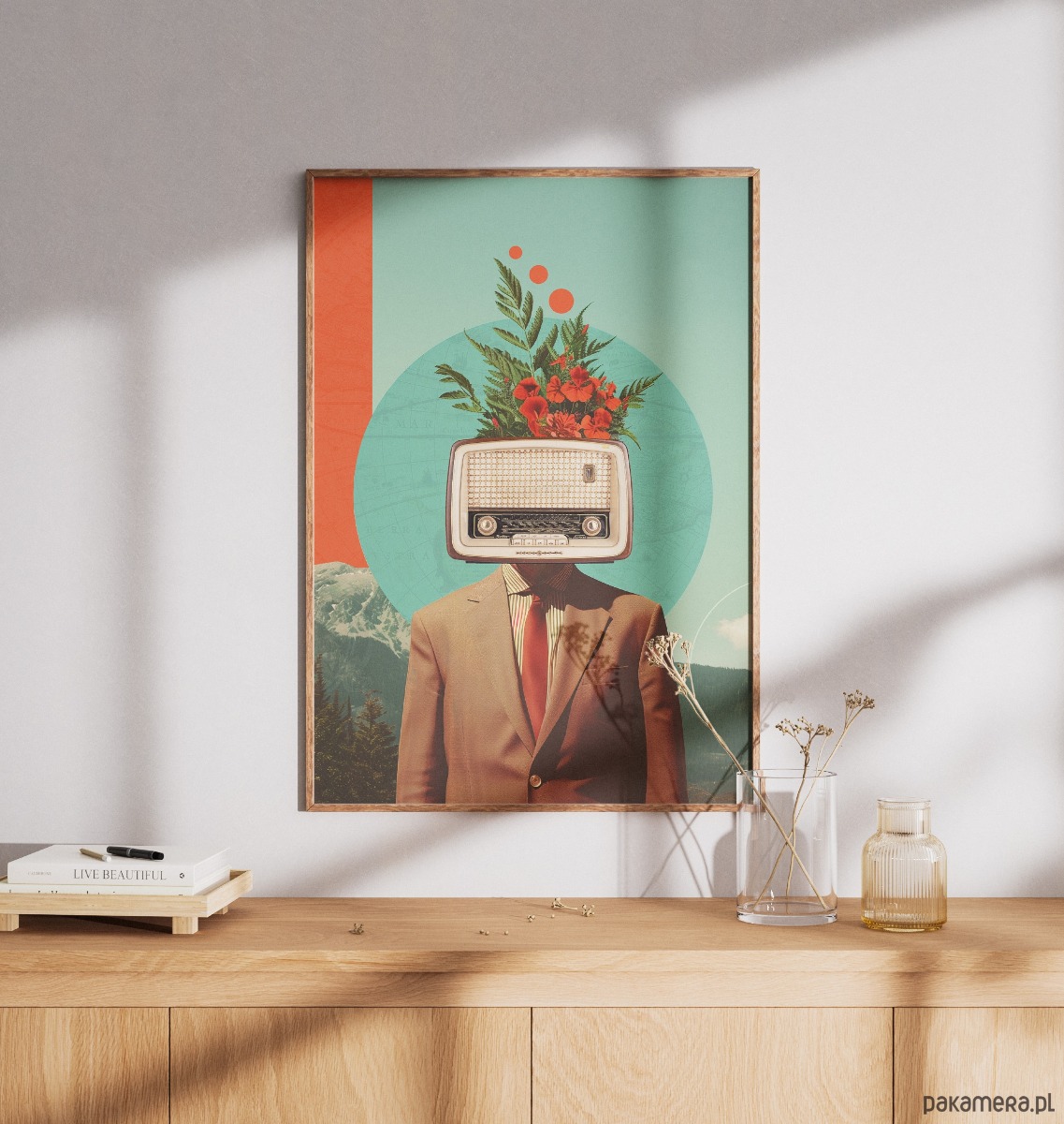 Plakat „Radiohead” to kolaż artystyczny, który łączy retro klimat analogowego radia z nowoczesną estetyką surrealizmu. Idealny dla tych, którzy żyją muzyką – muzyków, producentów, DJ-ów, kolekcjonerów winyli i wszystkich, dla których dźwięk to coś więcej niż tylko tło.
