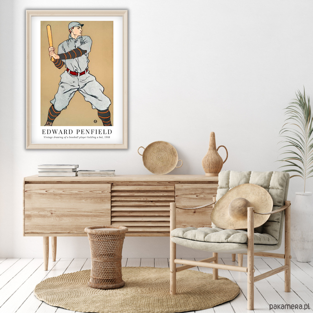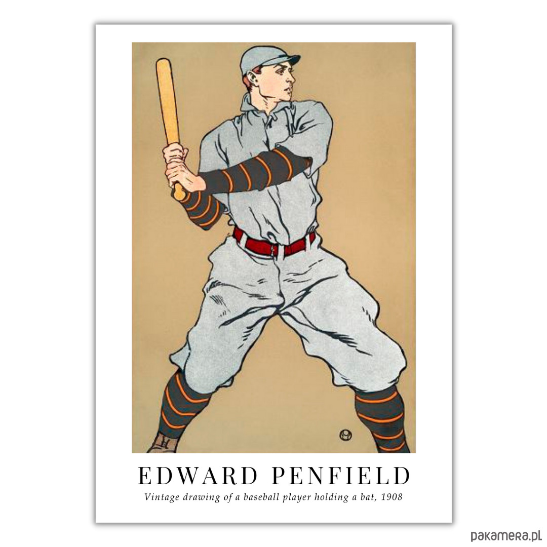 Reprodukcja: Edward Penfield 'Vintage drawing of a baseball player holding a bat' z 1908 r.