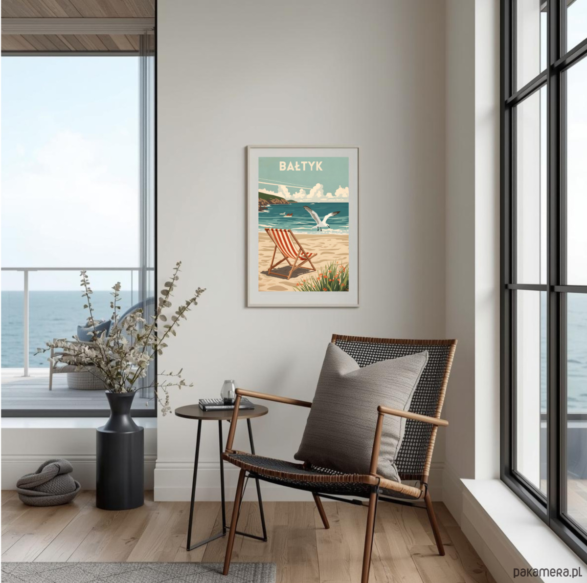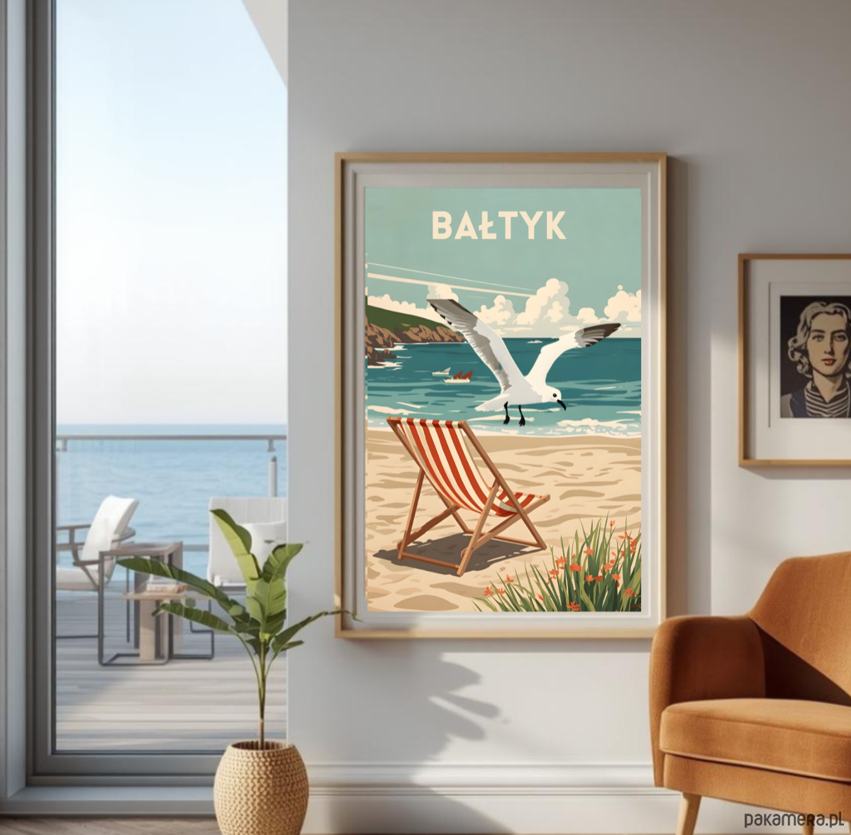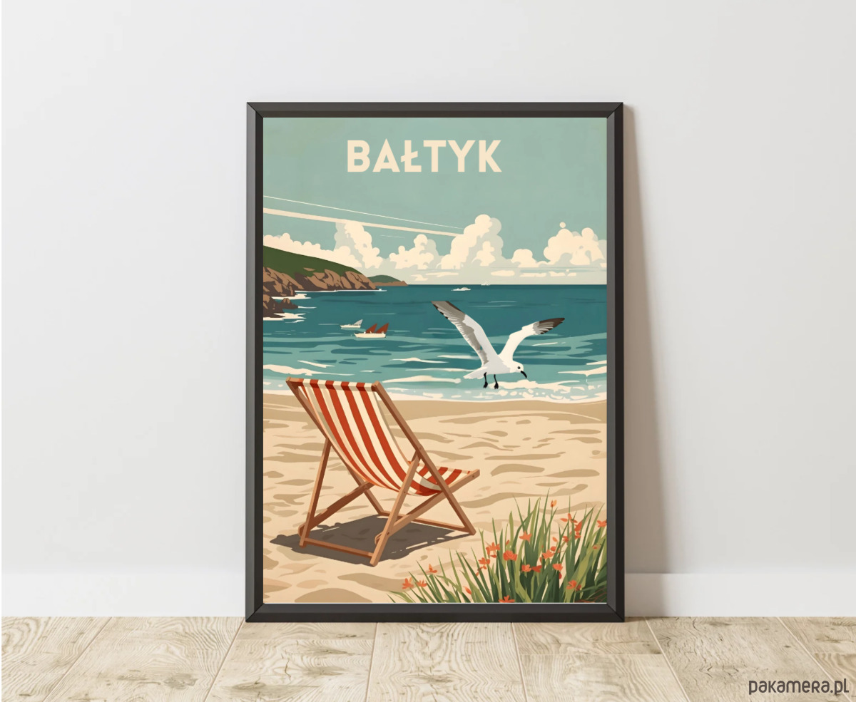PLAKAT retro Morze BAŁTYCKIE ilustracja plaża morski Bałtyk