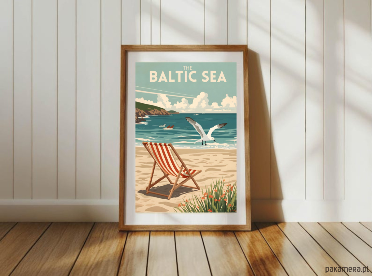 PLAKAT retro Morze BAŁTYCKIE ilustracja plaża morski