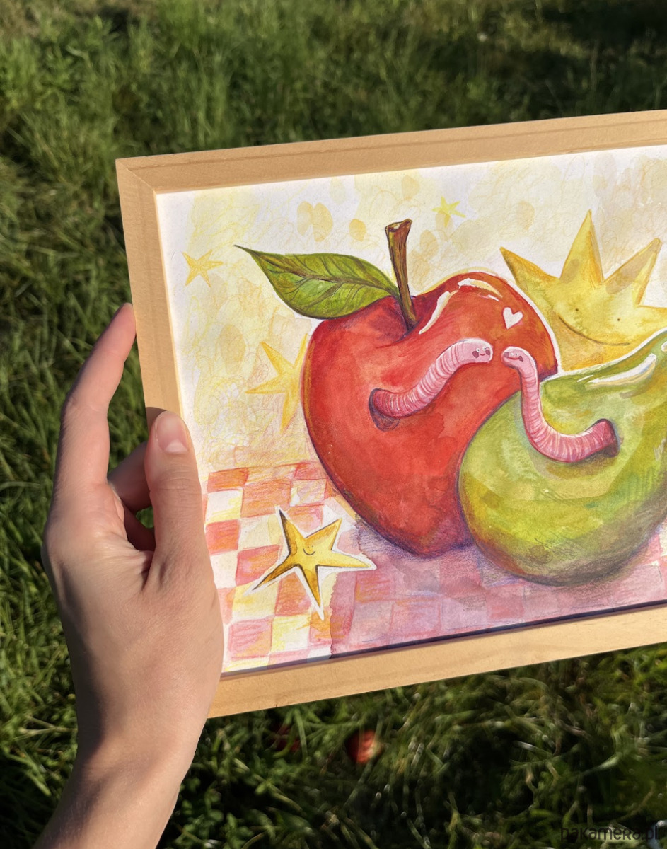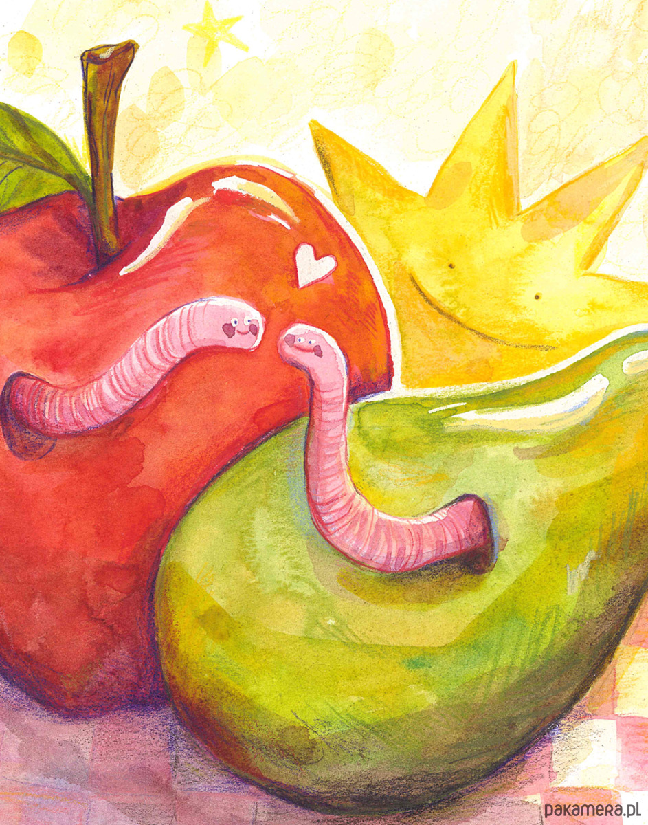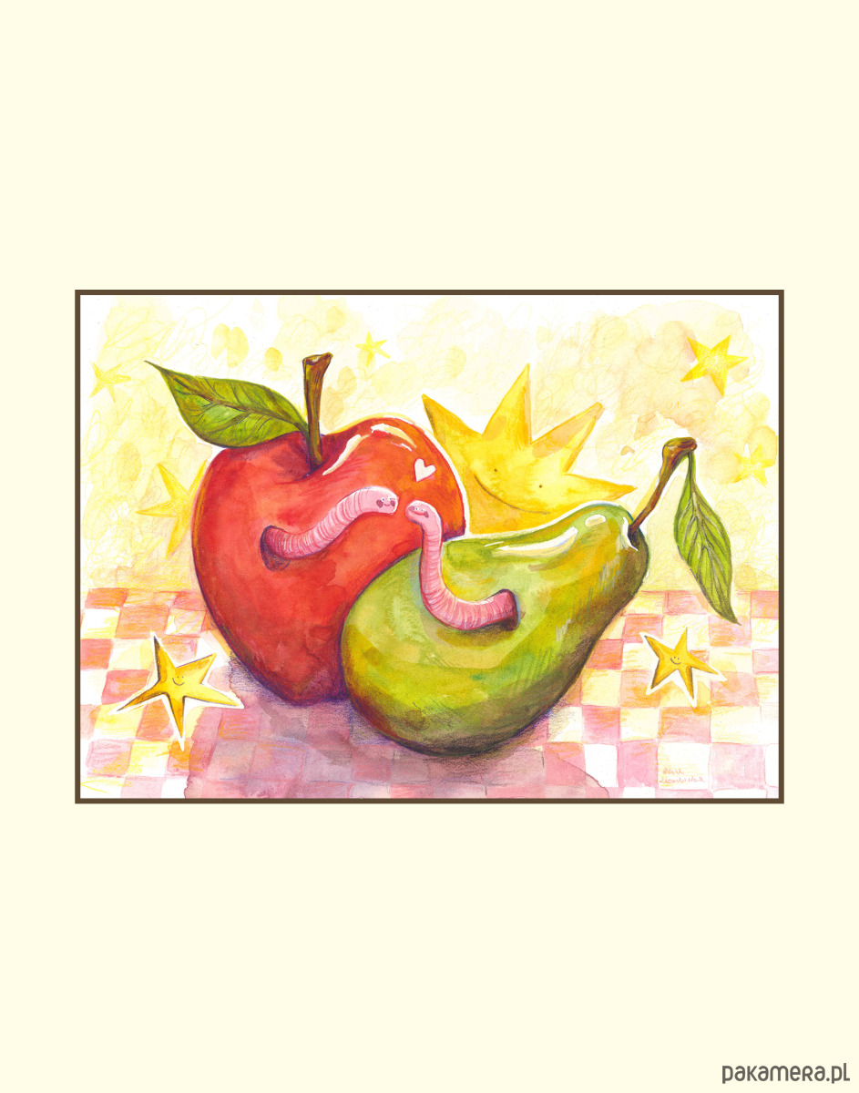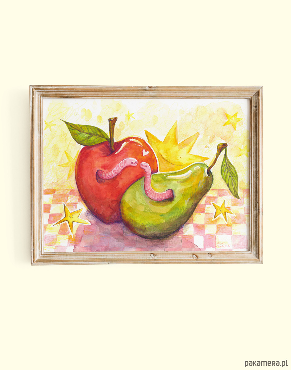 Plakat robaczki w owocach