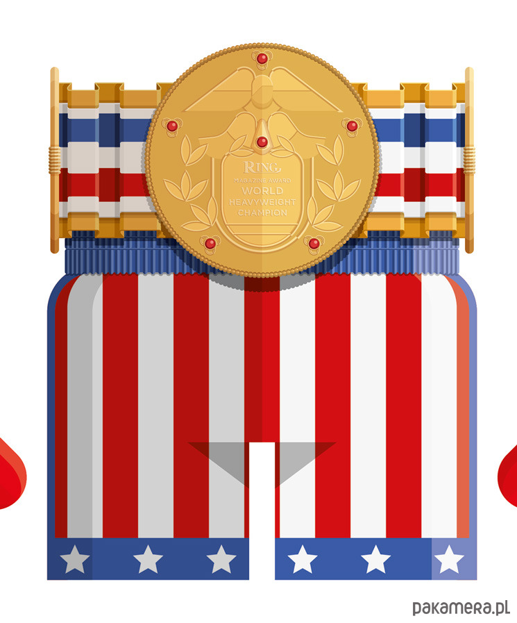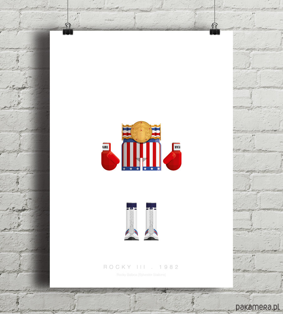 Plakat z autorską grafiką inspirowaną filmem "Rocky". Pochodzi z serii "TV & Cinema Costumes" i przedstawia strój tytułowego bohatera.