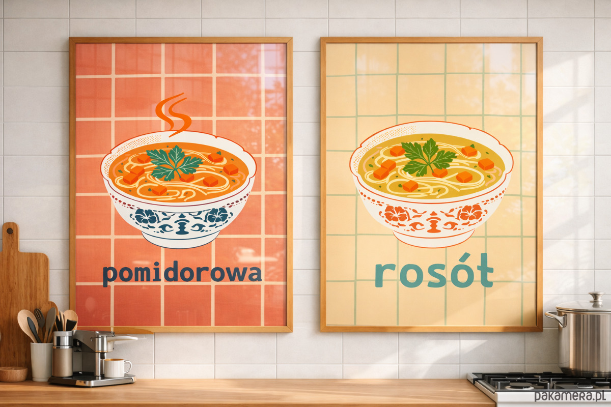 Plakaty „pomidorowa” i „rosół” to gra koloru, prostoty i nostalgii zamknięta w nowoczesnej formie.
