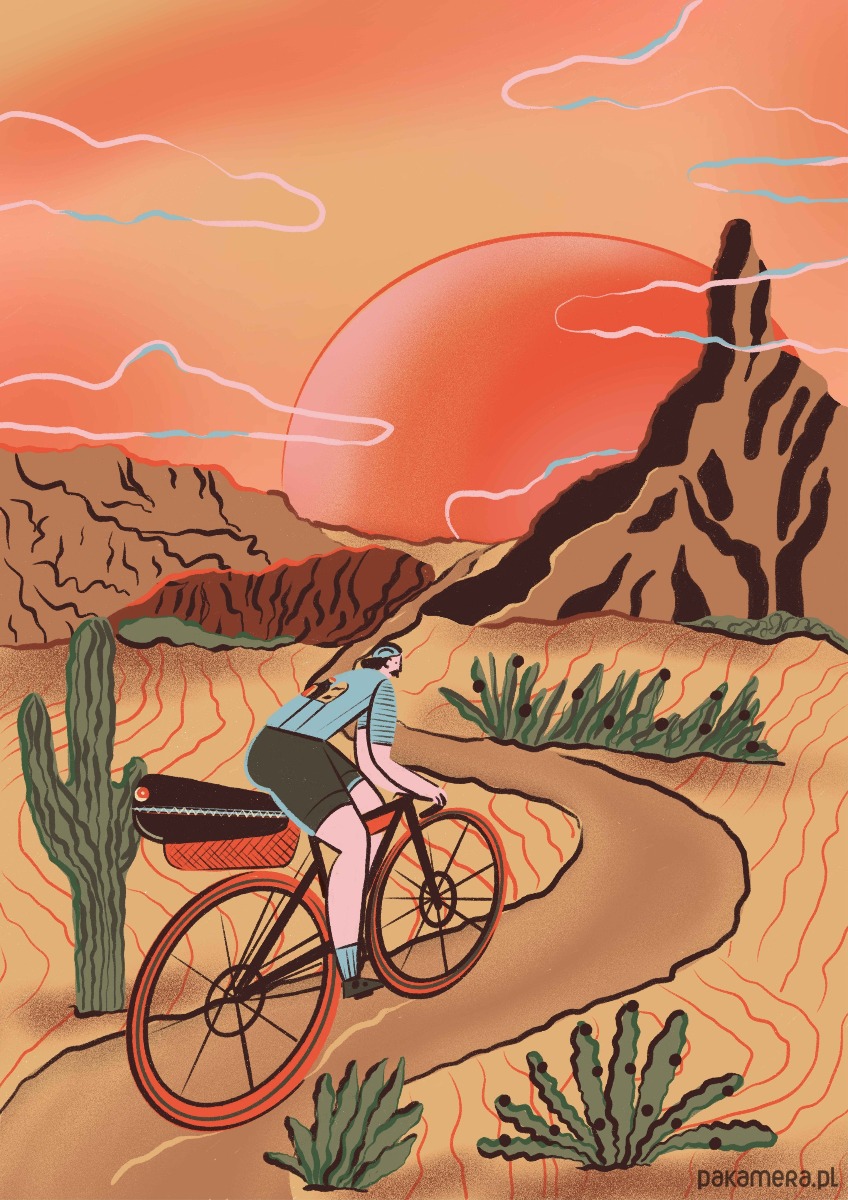 Plakat stworzony z pasji do kolarstwa przygodowego. Inspirowany niezliczoną ilością rowerowych przygód oraz poczuciem wolności jaką dają dwa kółka.