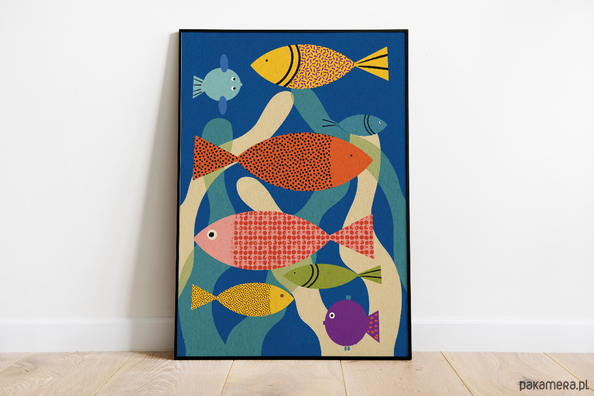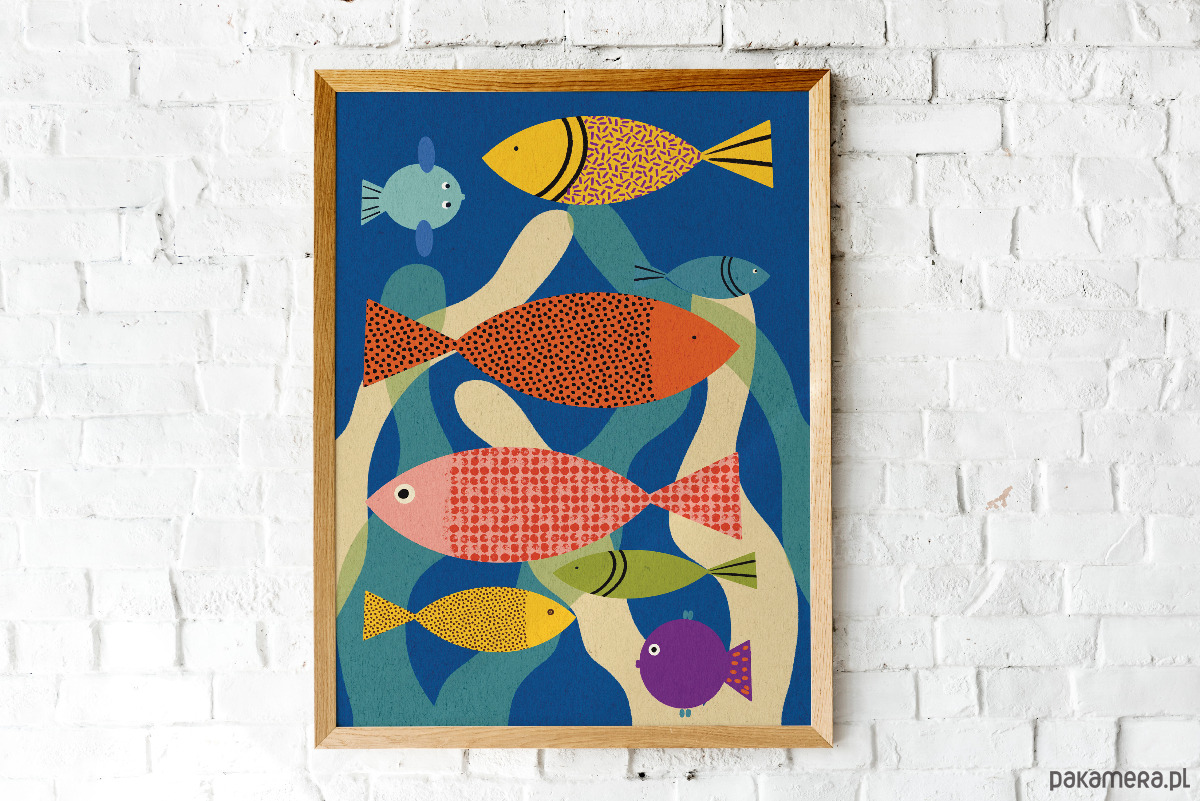 Cyfrowy wydruk autorskiej ilustracji. Zaprojektowany i wydrukowany w Polsce. Plakat geometryczny z retro charakterem.