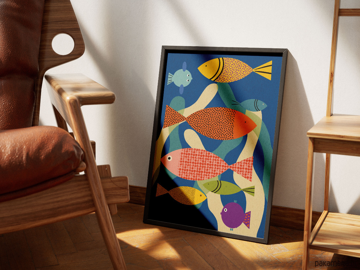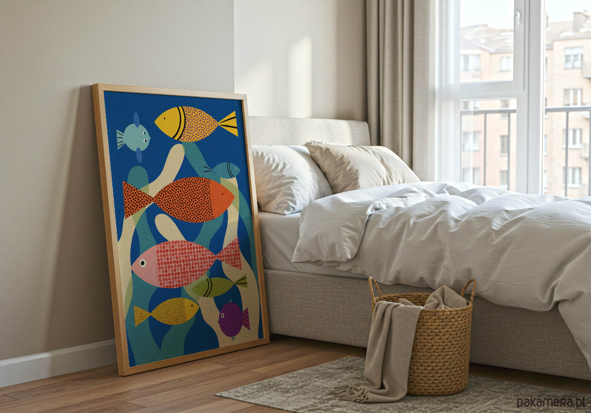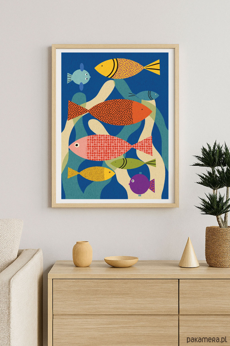 Cyfrowy wydruk autorskiej ilustracji. Zaprojektowany i wydrukowany w Polsce. Plakat geometryczny z retro charakterem.