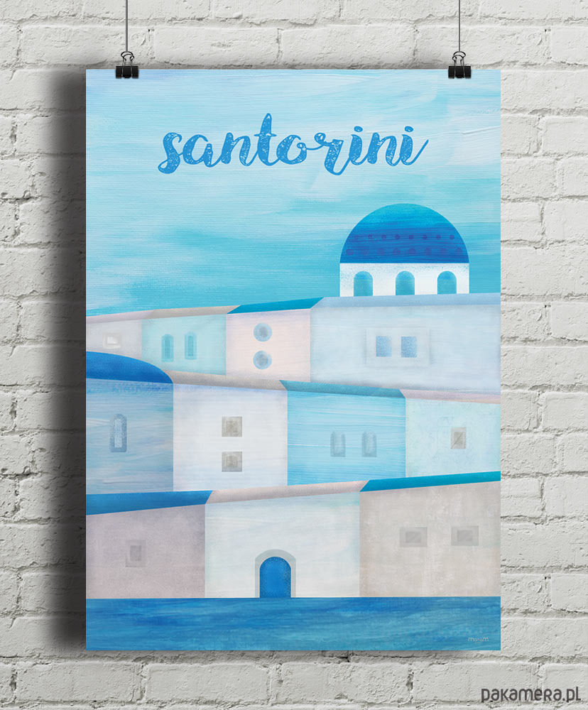 Plakat Santorini to niebieskie dachy i kaskadowo ułożone budynki "wpatrujące" się w bezkresne morze. Grafika z grecką wyspą stanowi świetną dekorację dla wszystkich, którzy już zakochali się w tym miejscu, bądź dopiero marzą o spędzeniu tam wakacji.