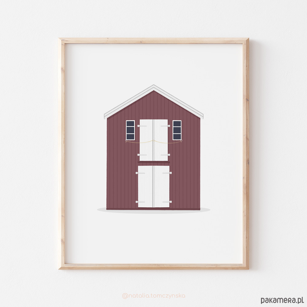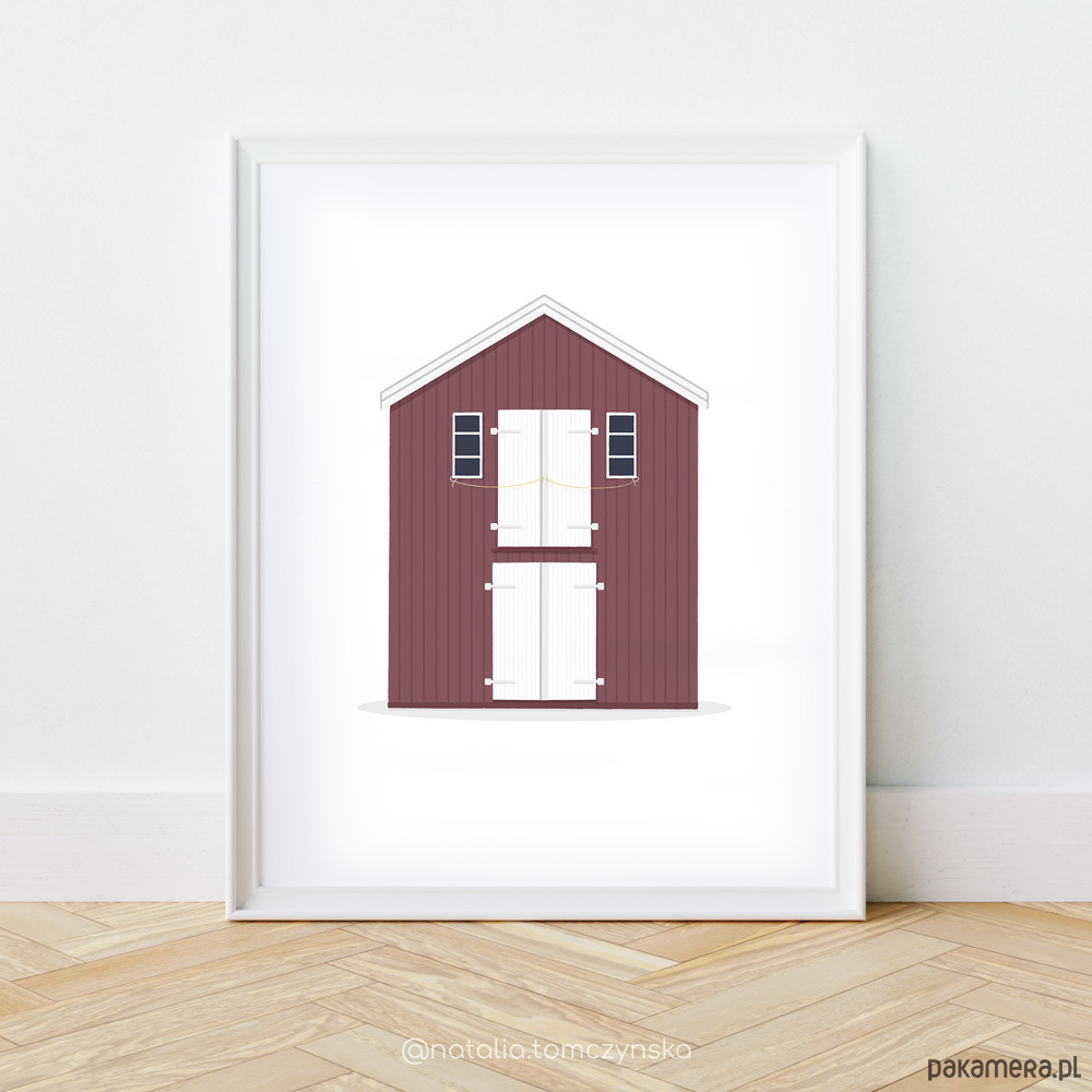 Ilustracja inspirowana podróżą do Szwecji. Wspaniale wygląda jako tryptyk z innymi domkami z kolekcji.