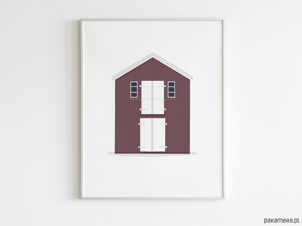 Plakat - Skandynawski Burgundowy Domek