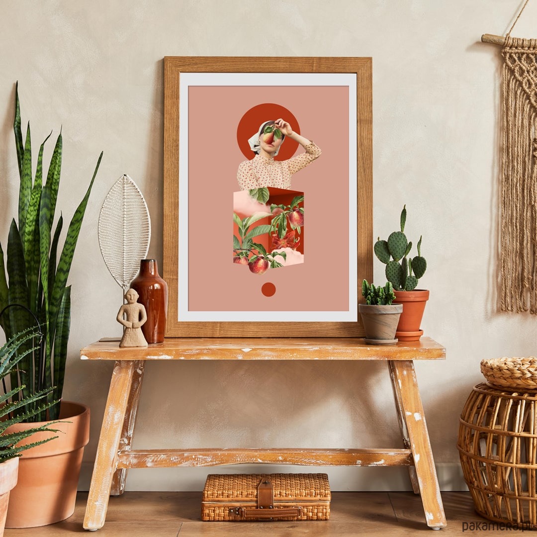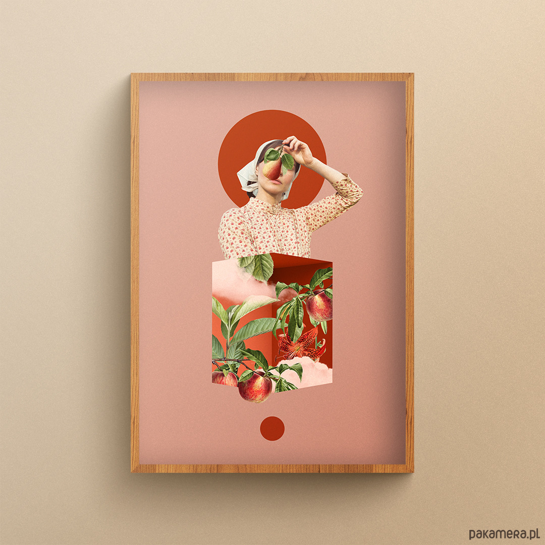 Inspirowany zapachami i smakami ciepłych dni: kolaż "Słodycz lata". Utrzymany w ciepłych odcieniach brzoskwioniowo - pomarańczowych plakat wniesie dużo energii do Twojego wnętrza.