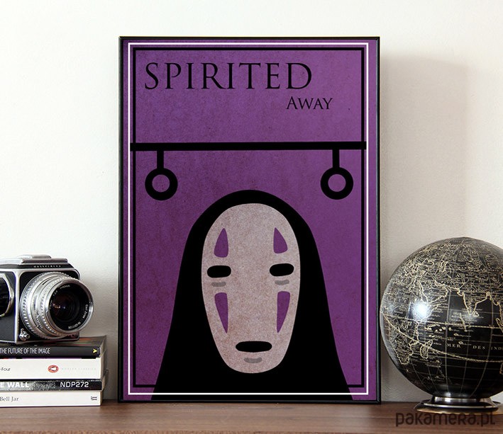 Plakat z autorską grafiką inspirowaną filmem Spirited Away w reżyserii Hayao Miyazakiego.