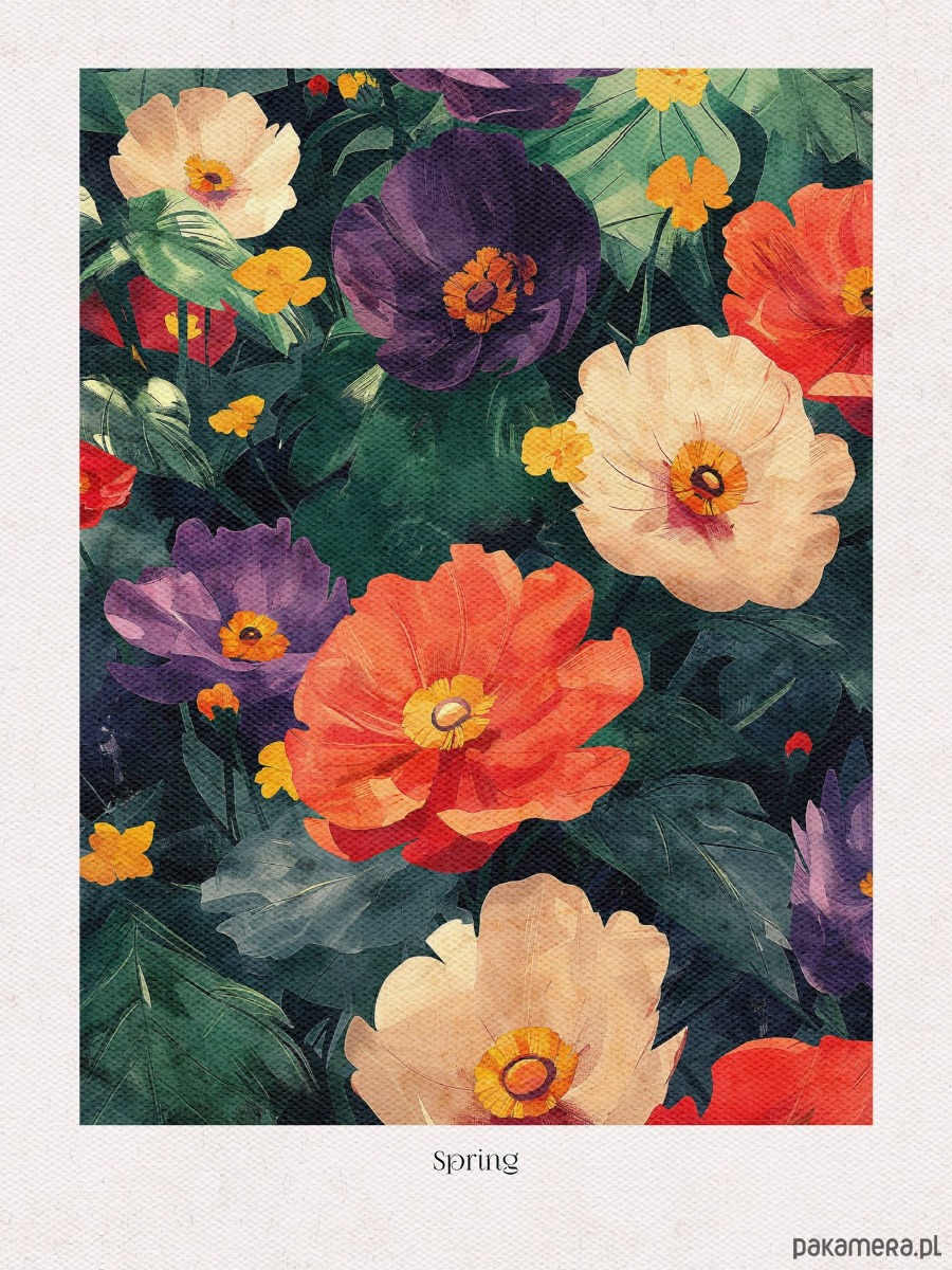 Odkryj uosobienie wiosennej błogości. Wypełniona żywymi kolorami i delikatnymi motywami kwiatowymi ilustracja nastroi Cię kwitnąco!