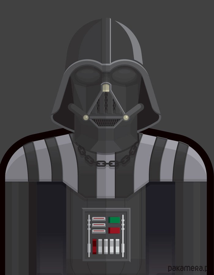 Plakat z autorską grafiką inspirowaną filmem "Gwiezdne Wojny" (Star Wars), reż. George Lucas. Pochodzi z serii "Hollywood Costumes" i przedstawia strój Dartha Vadera.