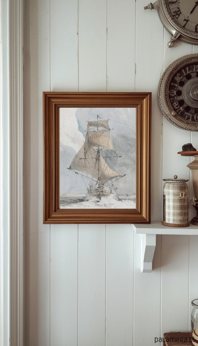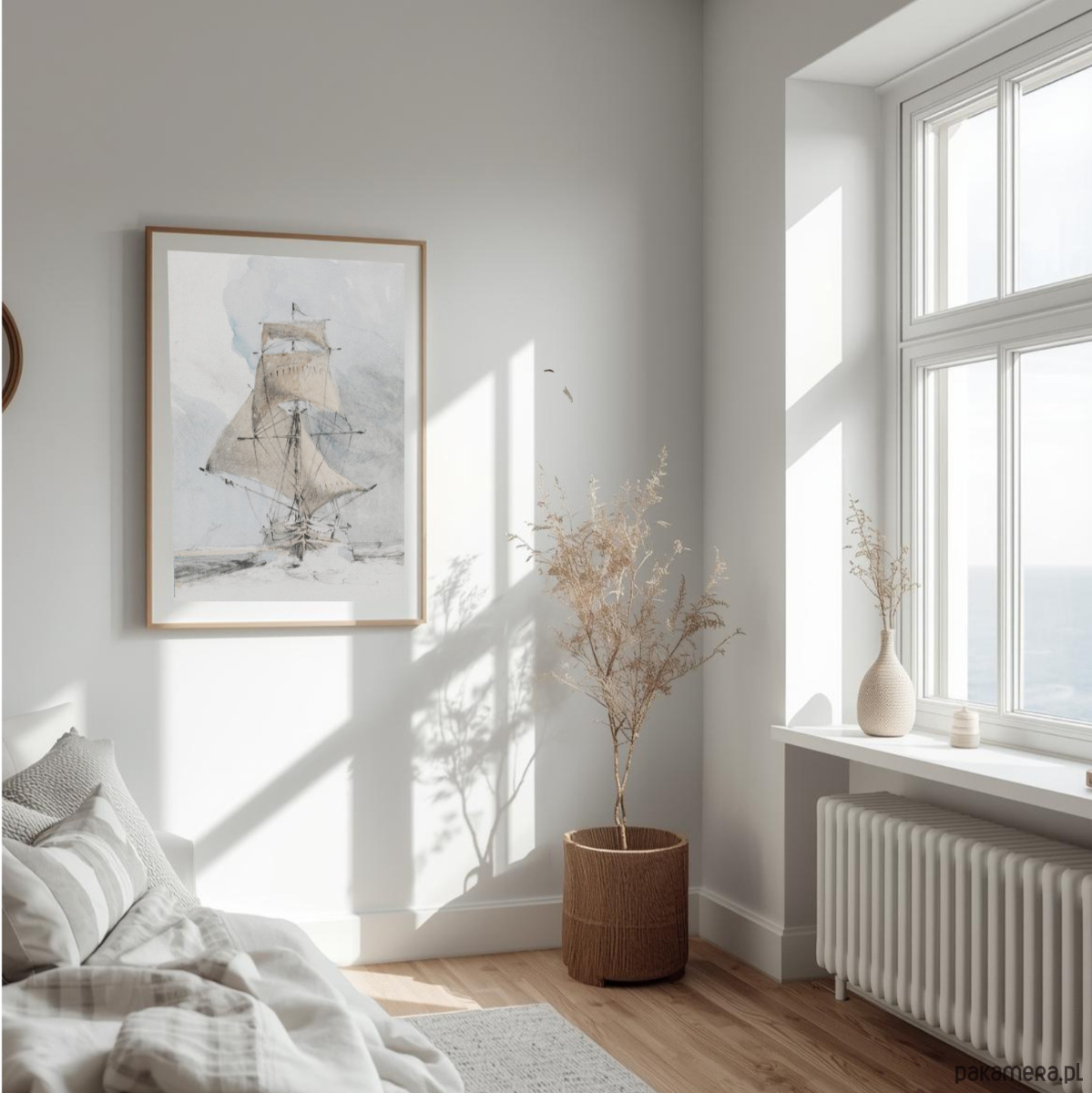 PLAKAT statek, krajobraz morze, pejzaż morski