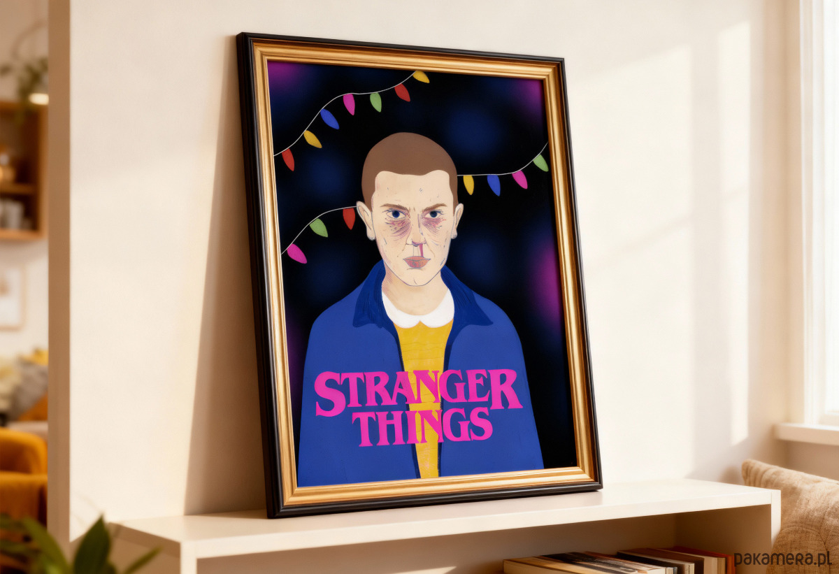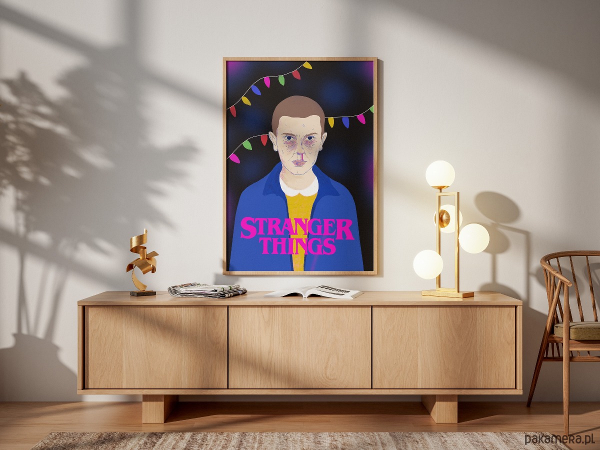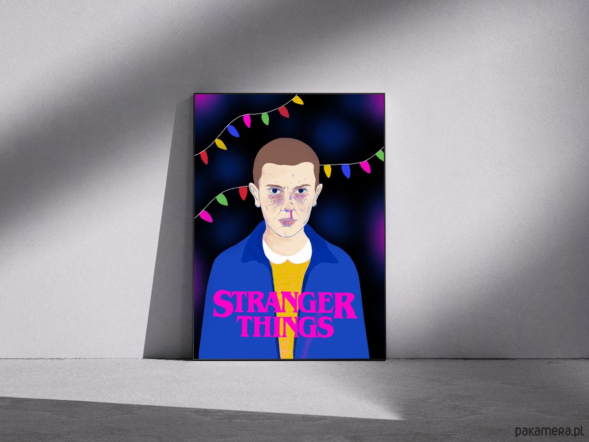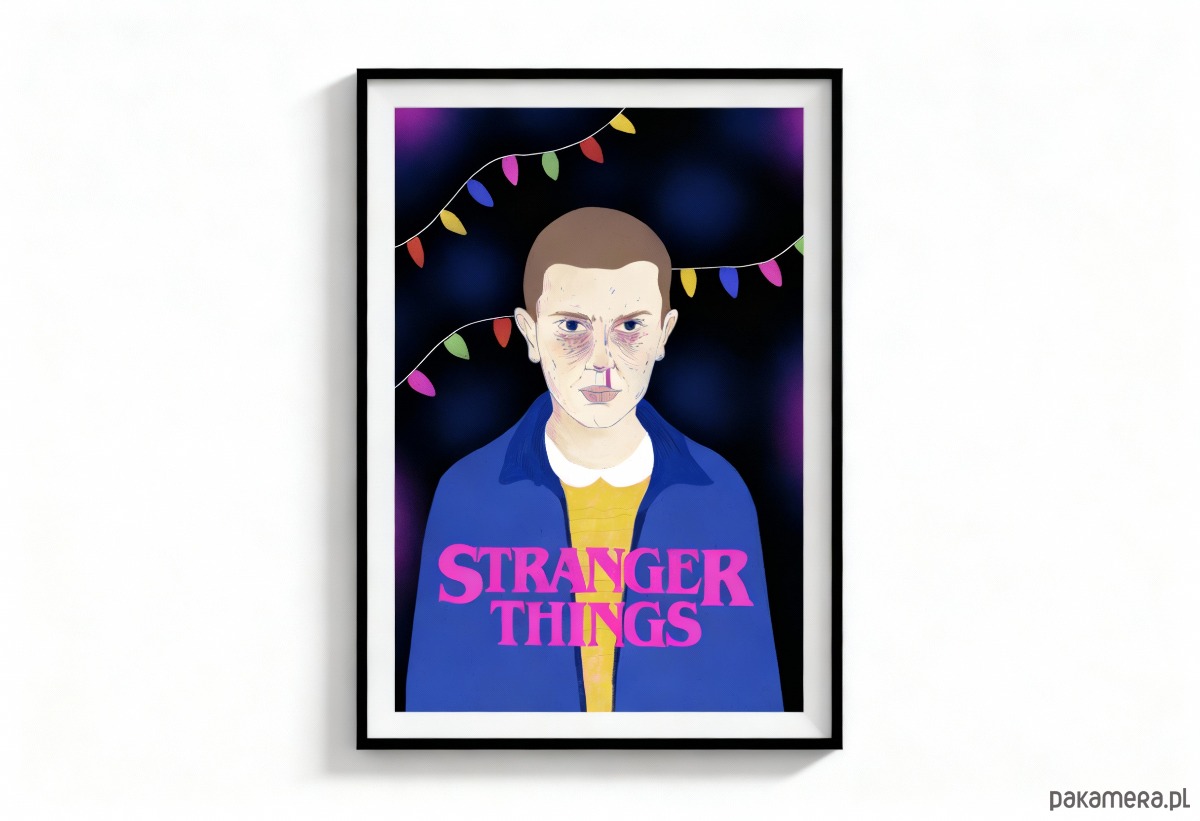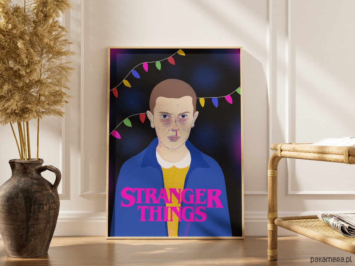 Ten plakat to hołd dla klimatu lat 80., neonów i mrocznych historii z małych miasteczek, gdzie dzieją się rzeczy… zdecydowanie nie z tego świata. Twoja ulubiona postać - Nastka/Eleven z Stranger Things.