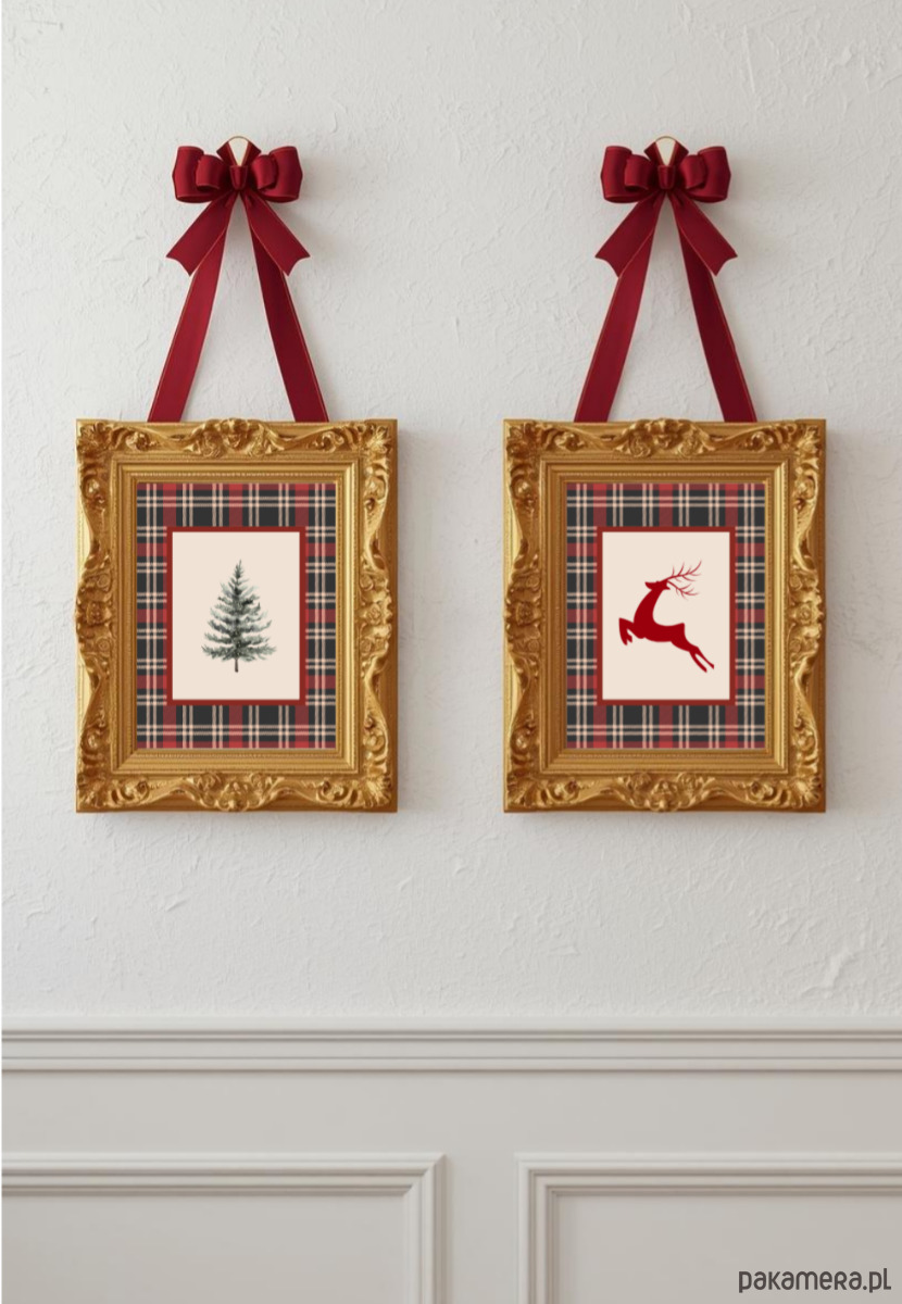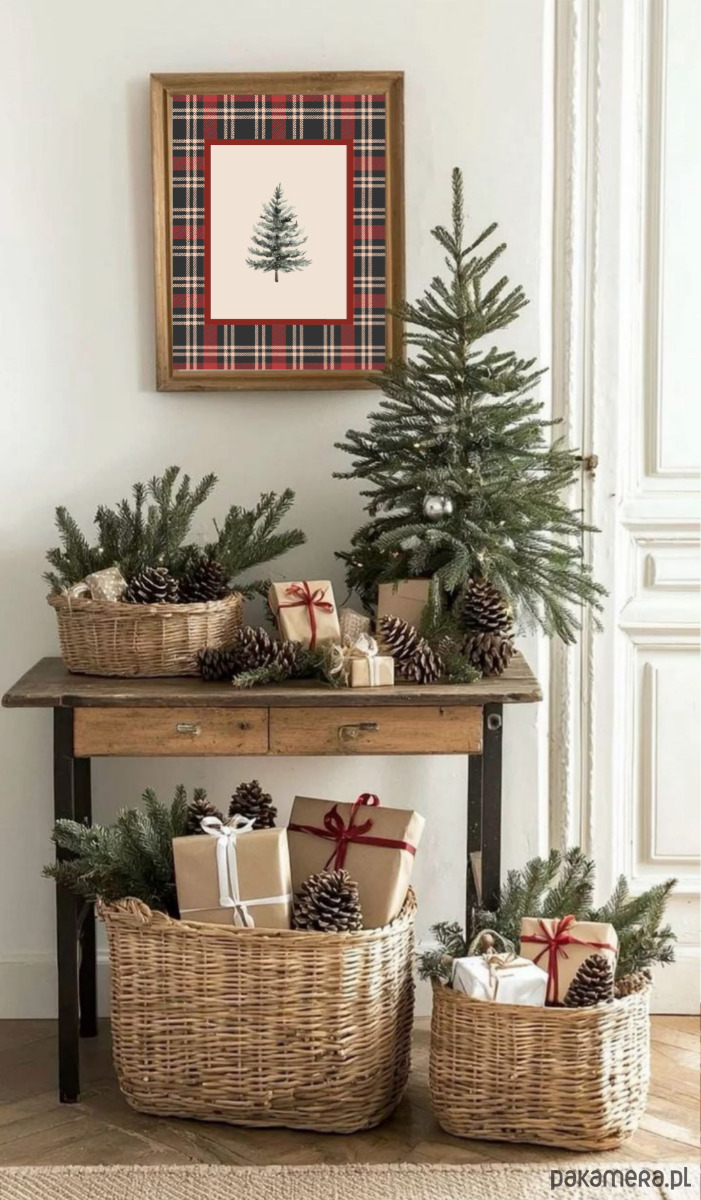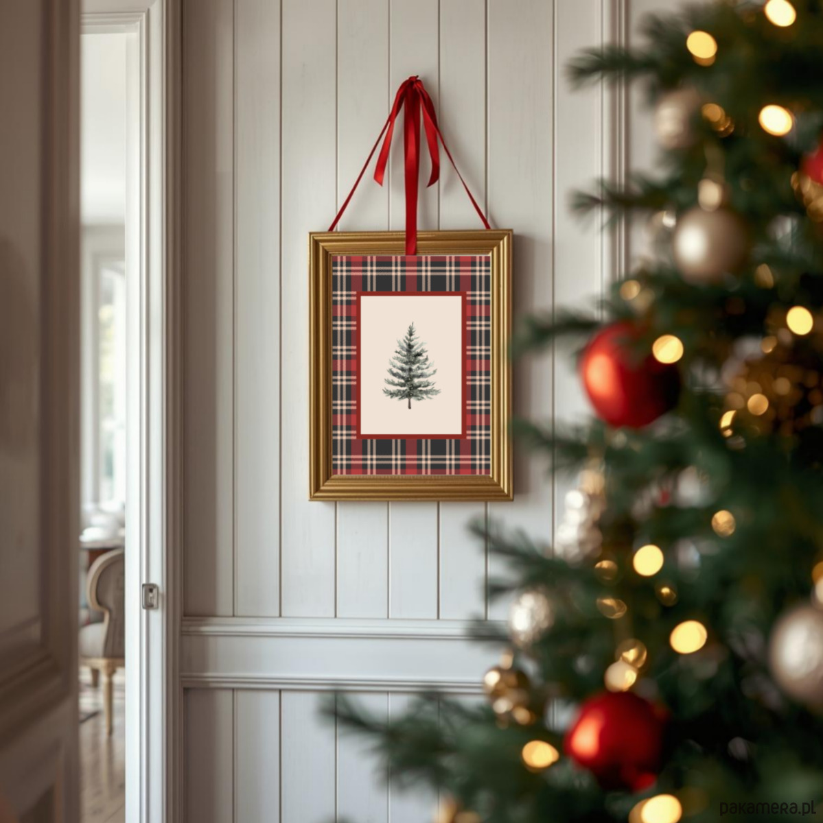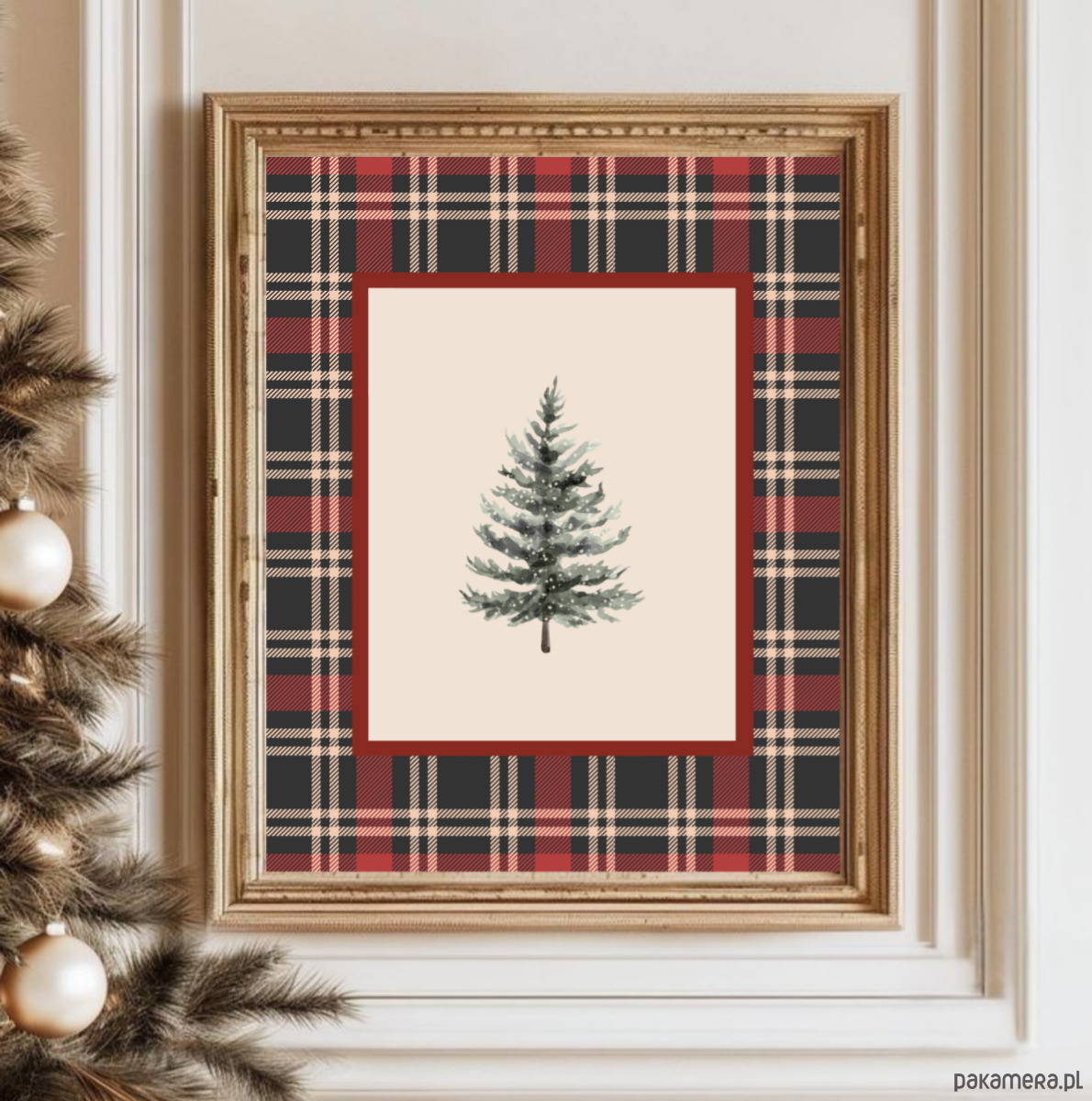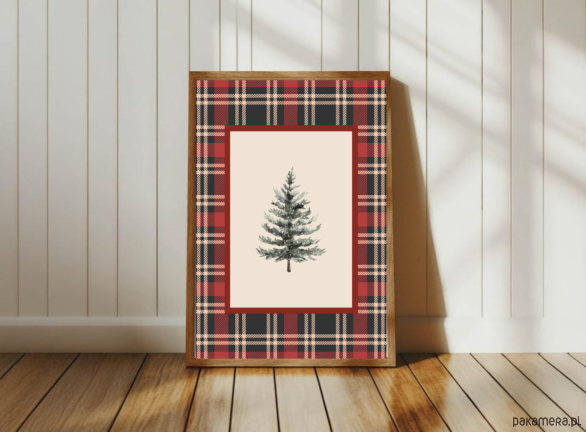 PLAKAT świąteczny choinka vintage grafika drzewko krata